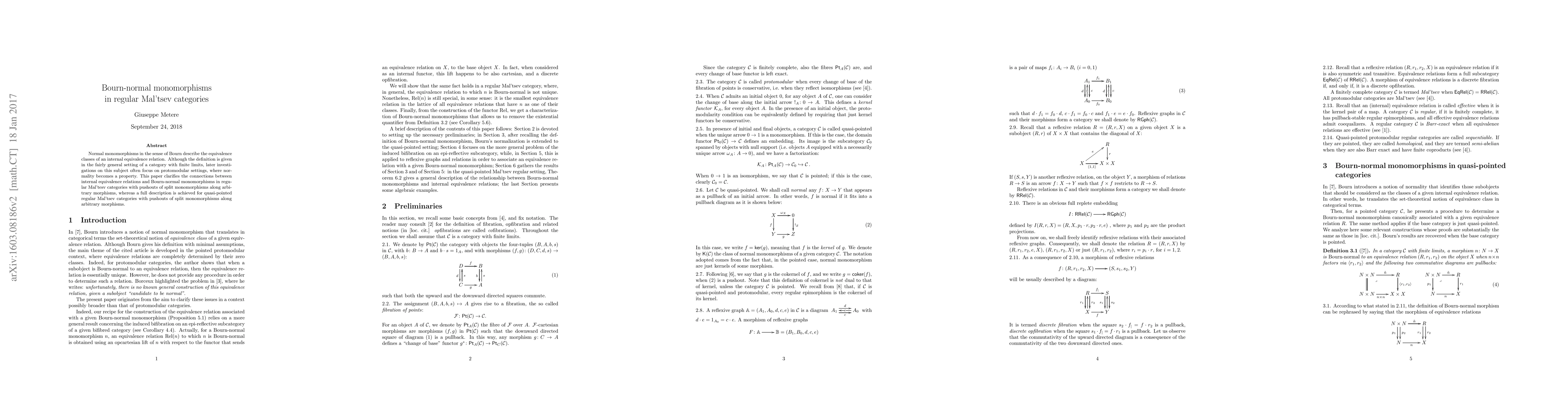 This paper investigates Bourn-normal monomorphisms in regular Mal'tsev categories, establishing their connections to internal equivalence relations and providing a complete description for quasi-pointed regular Mal'tsev categories with specified pushouts.