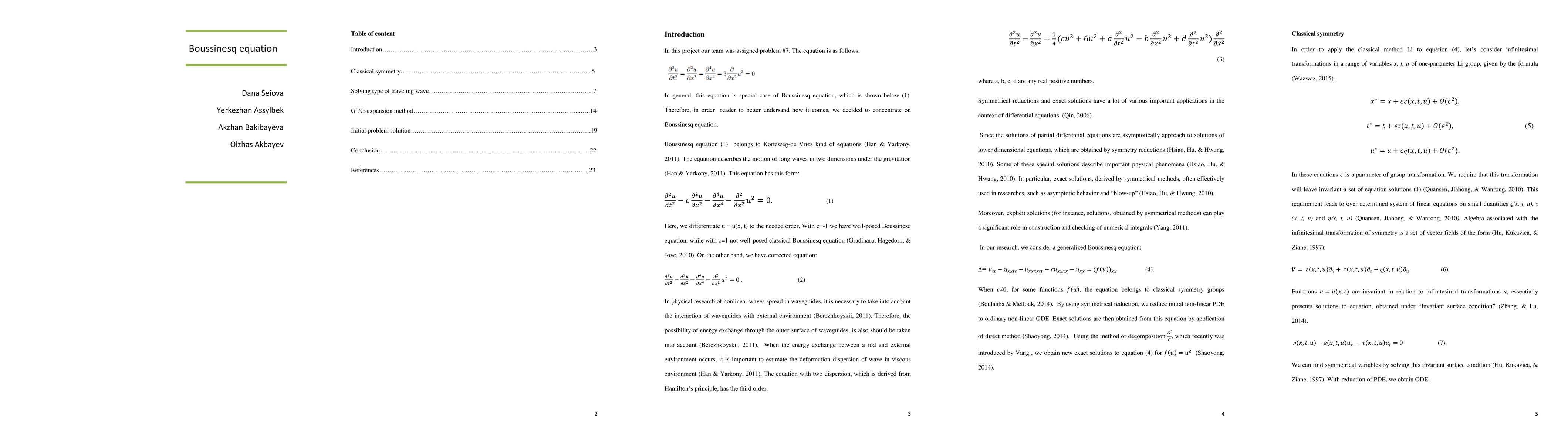 Boussinesq equation belongs to Korteweg-de Vries kind of equations (Han & Yarkony, 2011). Equation describes the motion of long waves in two dimensions under the gravitation (Han & Yarkony, 2011). Here, we differentiate u = u(x, t) to the needed order. With c=-1 we have well-posed Boussinesq equation, while with c=1 not well-posed classical Boussinesq equation (Gradinaru, Hagedorn, & Joye, 2010). In physical research of nonlinear waves spread in waveguides, it is necessary to take into account the interaction of waveguides with external environment (Berezhkoyskii, 2011). Therefore, the possibility of energy exchange through the outer surface of waveguides, is also should be taken into account (Berezhkoyskii, 2011). When the energy exchange between a rod and external environment occurs, it is important to estimate the deformation dispersion of wave in viscous environment (Han & Yarkony, 2011).