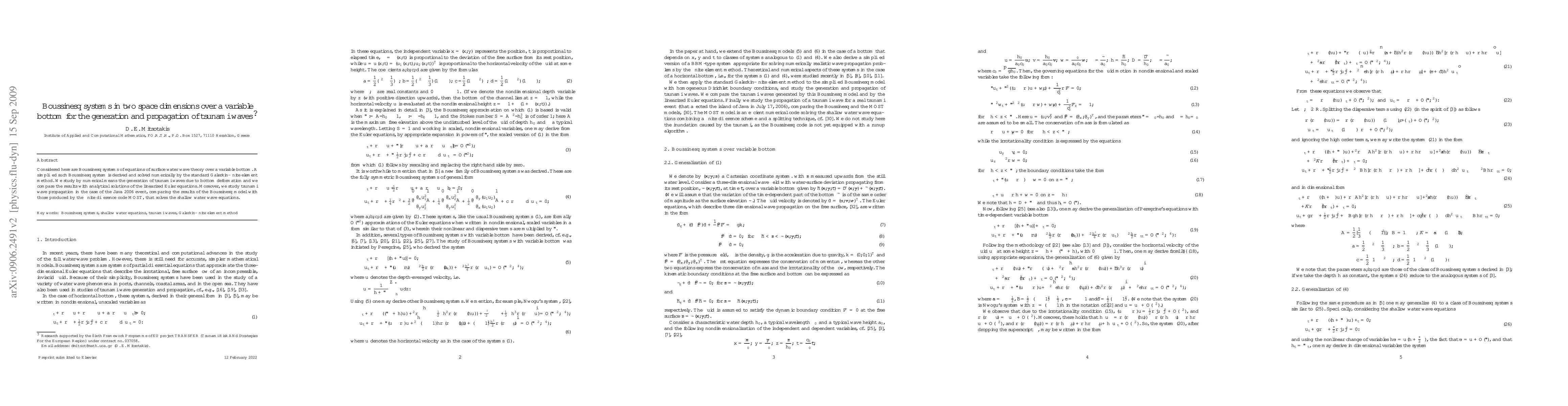 This paper investigates Boussinesq systems for modeling tsunami waves over a variable sea bottom, deriving and numerically solving a simplified system using Galerkin-finite elements. It examines tsunami generation from bottom deformation, compares results with linearized Euler equations, and analyzes the 2006 Java tsunami event using the Boussinesq model versus the MOST finite difference code.