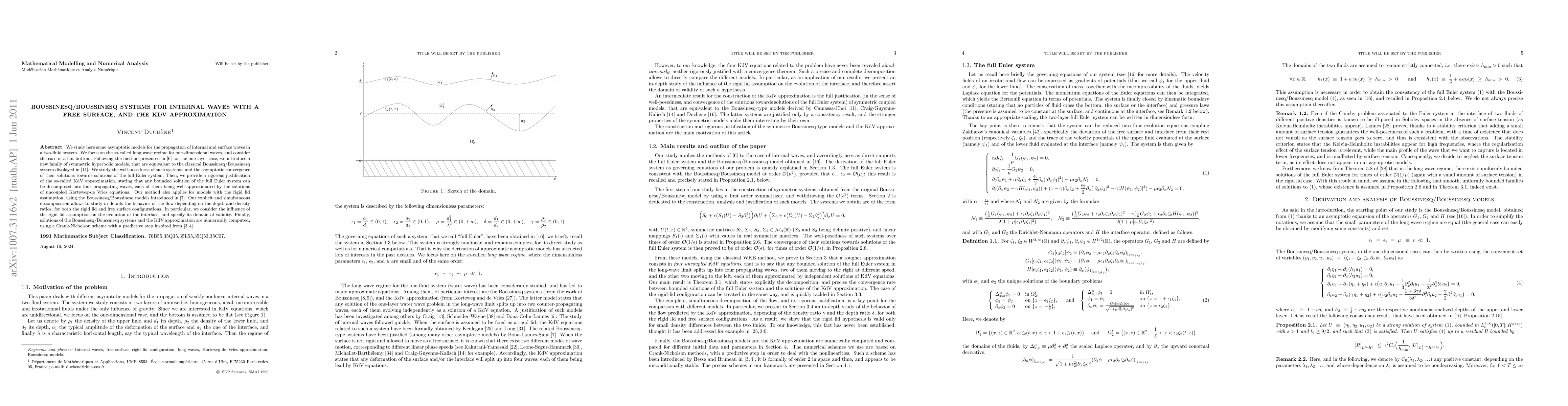 This paper develops new symmetric hyperbolic systems for modeling internal and surface waves in a two-fluid system, justifying the KdV approximation for bounded solutions. It rigorously compares the Boussinesq/Boussinesq systems and the KdV approximation, analyzing their behavior under both rigid lid and free surface conditions.