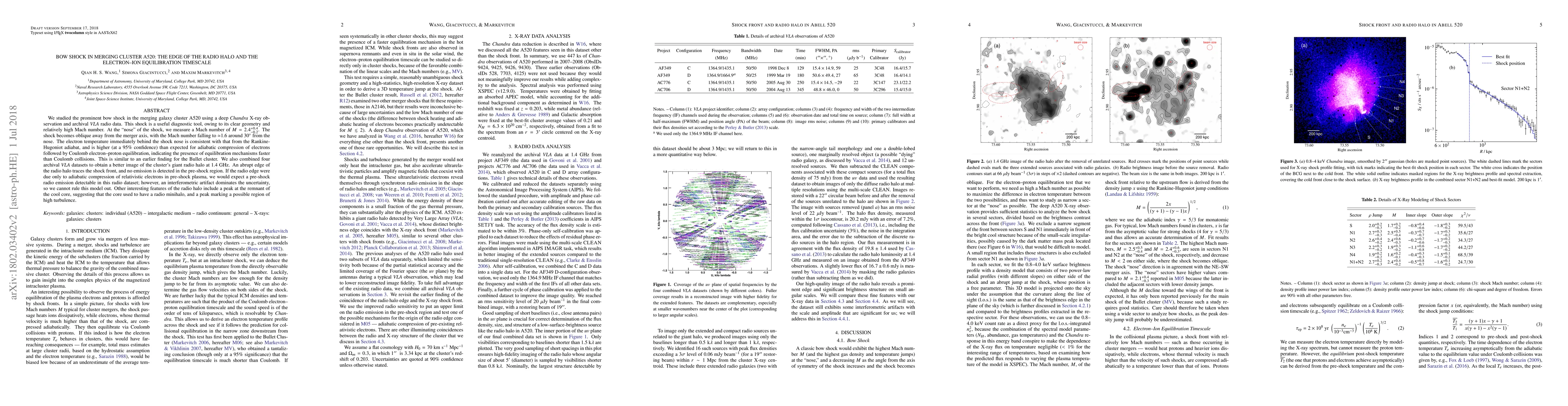 Researchers studied a bow shock in galaxy cluster A520 using X-ray and radio data, finding that it has a high Mach number and electron temperature consistent with rapid equilibration mechanisms. The study also reveals an abrupt edge of the radio halo tracing the shock front.