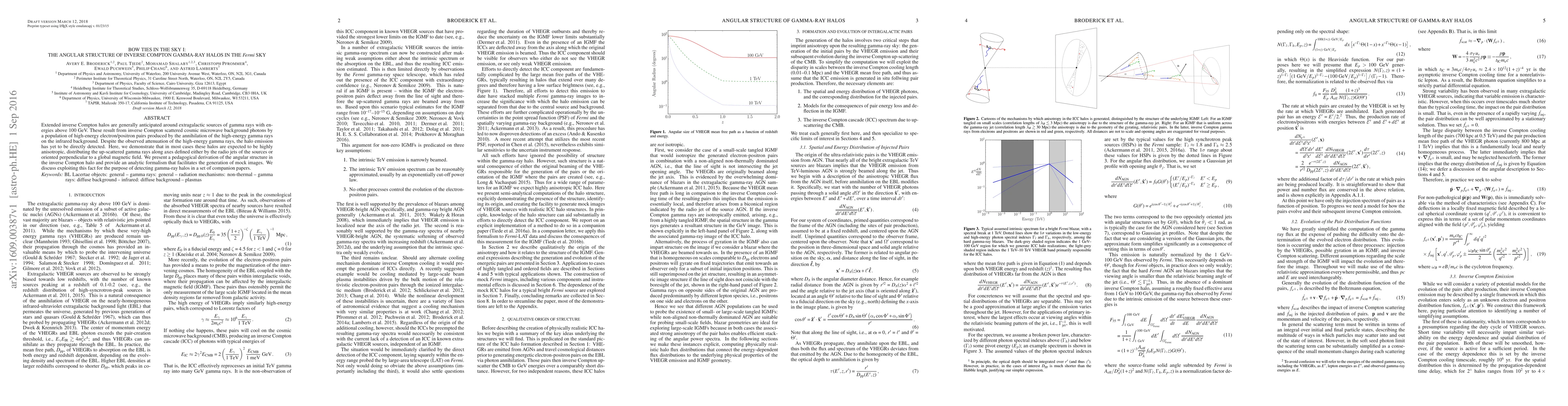 Extended inverse Compton halos are generally anticipated around extragalactic sources of gamma rays with energies above 100 GeV. These result from inverse Compton scattered cosmic microwave background photons by a population of high-energy electron/positron pairs produced by the annihilation of the high-energy gamma rays on the infrared background. Despite the observed attenuation of the high-energy gamma rays, the halo emission has yet to be directly detected. Here, we demonstrate that in most cases these halos are expected to be highly anisotropic, distributing the up-scattered gamma rays along axes defined either by the radio jets of the sources or oriented perpendicular to a global magnetic field. We present a pedagogical derivation of the angular structure in the inverse Compton halo and provide an analytic formalism that facilitates the generation of mock images. We discuss exploiting this fact for the purpose of detecting gamma-ray halos in a set of companion papers.