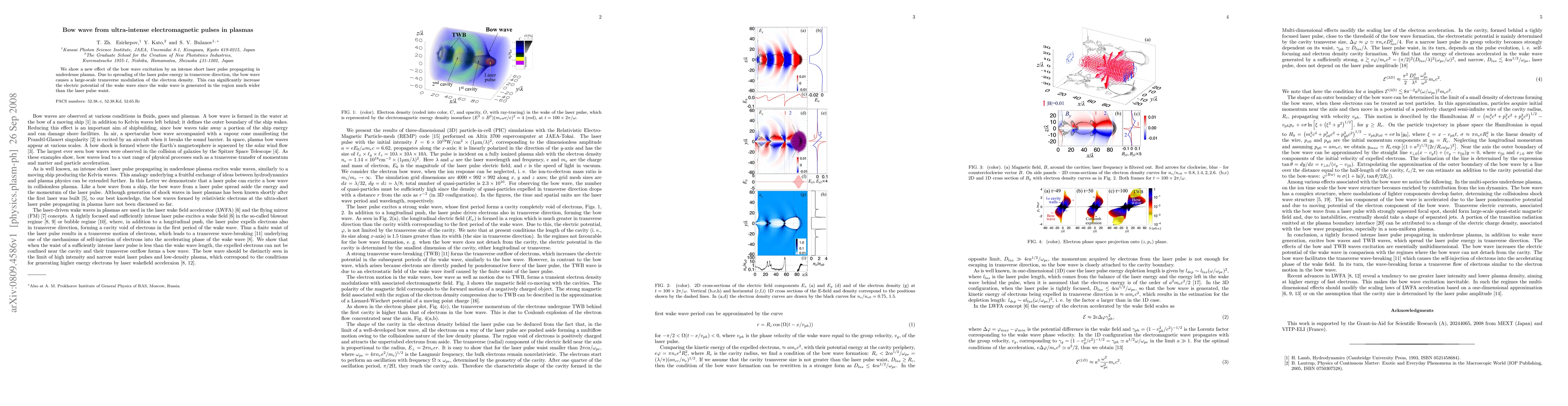 We show a new effect of the bow wave excitation by an intense short laser pulse propagating in underdense plasma. Due to spreading of the laser pulse energy in transverse direction, the bow wave causes a large-scale transverse modulation of the electron density. This can significantly increase the electric potential of the wake wave since the wake wave is generated in the region much wider than the laser pulse waist.