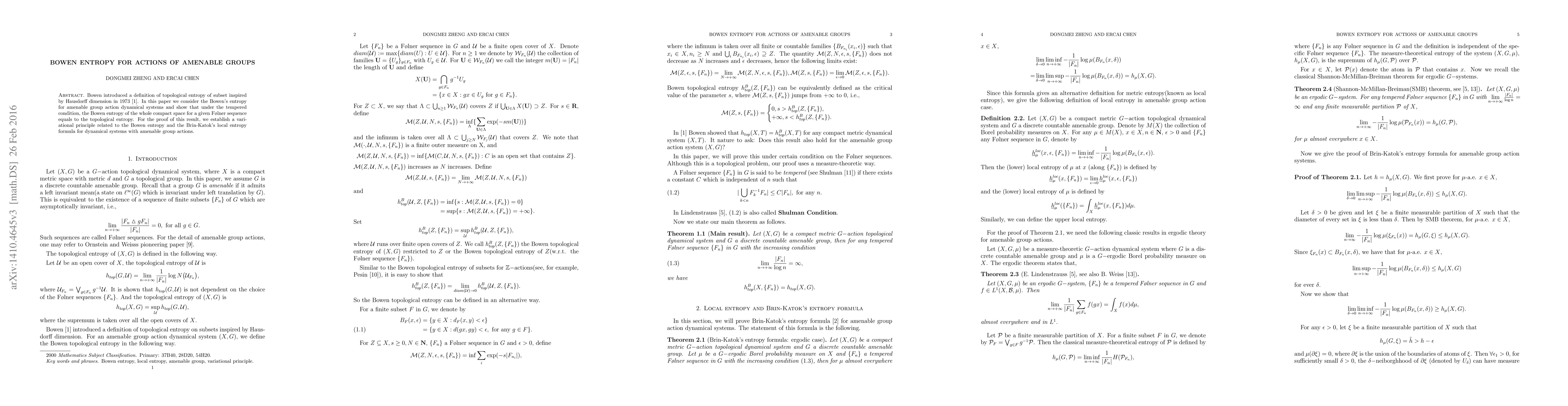 Bowen introduced a definition of topological entropy of subset inspired by Hausdorff dimension in 1973 \cite{B}. In this paper we consider the Bowen's entropy for amenable group action dynamical systems and show that under the tempered condition, the Bowen entropy of the whole compact space for a given F{\o}lner sequence equals to the topological entropy. For the proof of this result, we establish a variational principle related to the Bowen entropy and the Brin-Katok's local entropy formula for dynamical systems with amenable group actions.