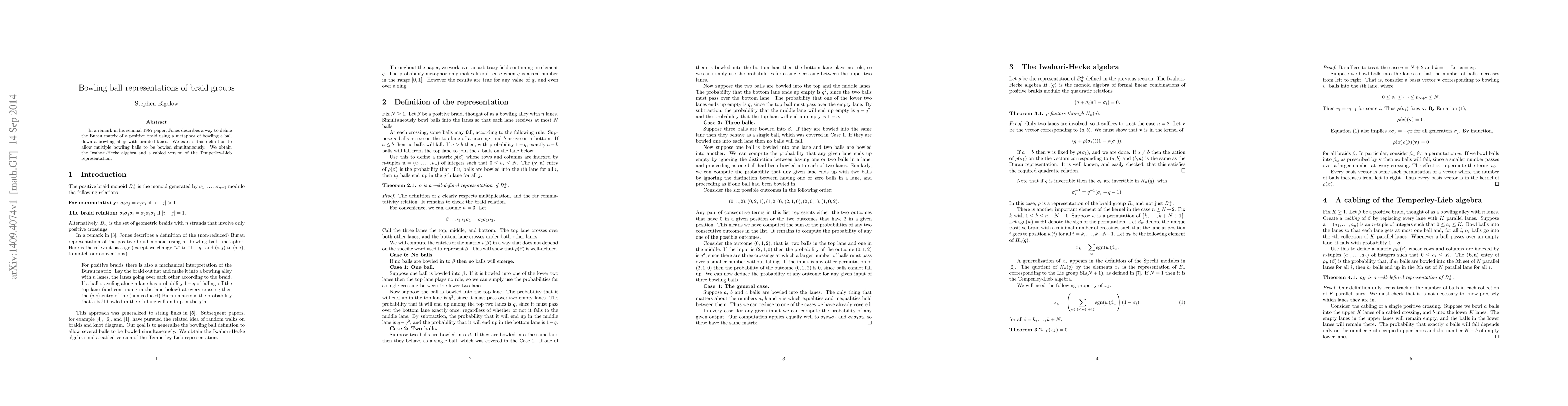 In a remark in his seminal 1987 paper, Jones describes a way to define the Burau matrix of a positive braid using a metaphor of bowling a ball down a bowling alley with braided lanes. We extend this definition to allow multiple bowling balls to be bowled simultaneously. We obtain the Iwahori-Hecke algebra and a cabled version of the Temperley-Lieb representation.