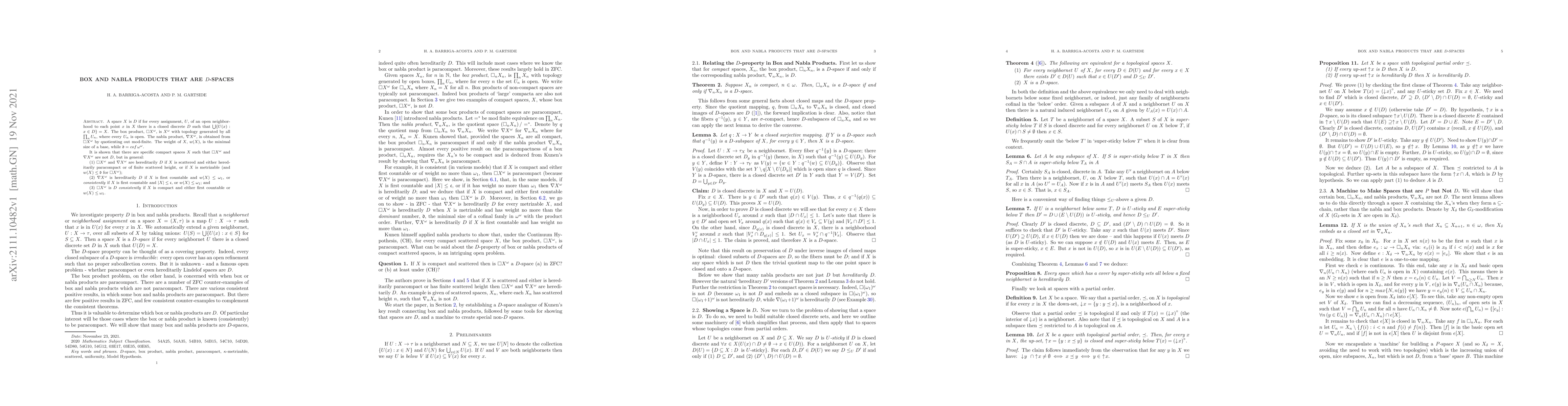 The paper introduces and utilizes the concepts of hereditary D-ness for box and nabla products, extending previous work on D-spaces by providing precise conditions for compact spaces.