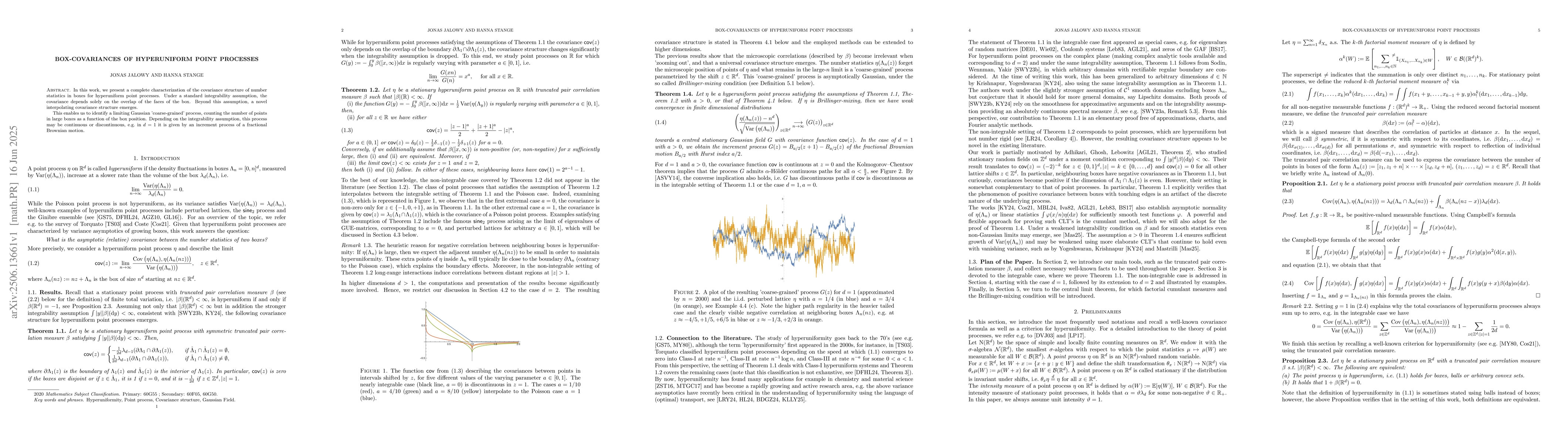 In this work, we present a complete characterization of the covariance structure of number statistics in boxes for hyperuniform point processes. Under a standard integrability assumption, the covariance depends solely on the overlap of the faces of the box. Beyond this assumption, a novel interpolating covariance structure emerges. This enables us to identify a limiting Gaussian 'coarse-grained' process, counting the number of points in large boxes as a function of the box position. Depending on the integrability assumption, this process may be continuous or discontinuous, e.g. in d=1 it is given by an increment process of a fractional Brownian motion.