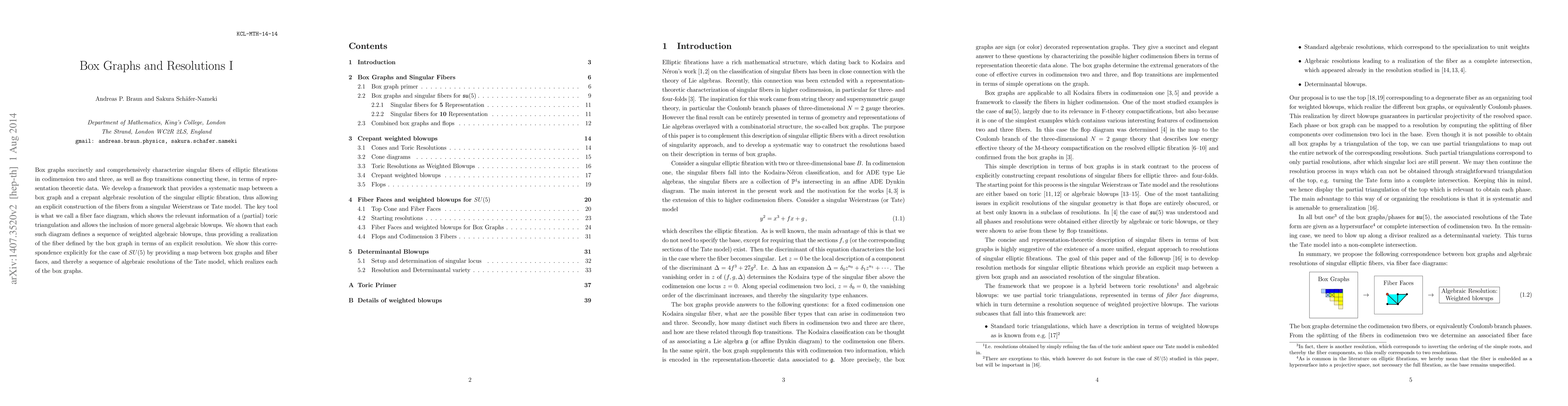 Box graphs succinctly and comprehensively characterize singular fibers of elliptic fibrations in codimension two and three, as well as flop transitions connecting these, in terms of representation theoretic data. We develop a framework that provides a systematic map between a box graph and a crepant algebraic resolution of the singular elliptic fibration, thus allowing an explicit construction of the fibers from a singular Weierstrass or Tate model. The key tool is what we call a fiber face diagram, which shows the relevant information of a (partial) toric triangulation and allows the inclusion of more general algebraic blowups. We shown that each such diagram defines a sequence of weighted algebraic blowups, thus providing a realization of the fiber defined by the box graph in terms of an explicit resolution. We show this correspondence explicitly for the case of SU(5) by providing a map between box graphs and fiber faces, and thereby a sequence of algebraic resolutions of the Tate model, which realizes each of the box graphs.