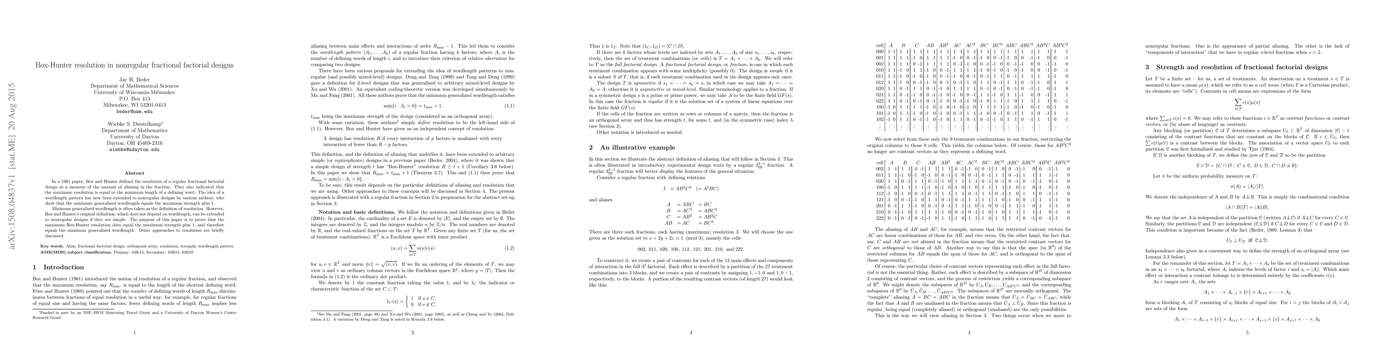 In a 1961 paper, Box and Hunter defined the resolution of a regular fractional factorial design as a measure of the amount of aliasing in the fraction. They also indicated that the maximum resolution is equal to the minimum length of a defining word. The idea of a wordlength pattern has now been extended to nonregular designs by various authors, who show that the minimum generalized wordlength equals the maximum strength plus 1. Minimum generalized wordlength is often taken as the definition of resolution. However, Box and Hunter's original definition, which does not depend on wordlength, can be extended to nonregular designs if they are simple. The purpose of this paper is to prove that the maximum Box-Hunter resolution does equal the maximum strength plus 1, and therefore equals the minimum generalized wordlength. Other approaches to resolution are briefly discussed.