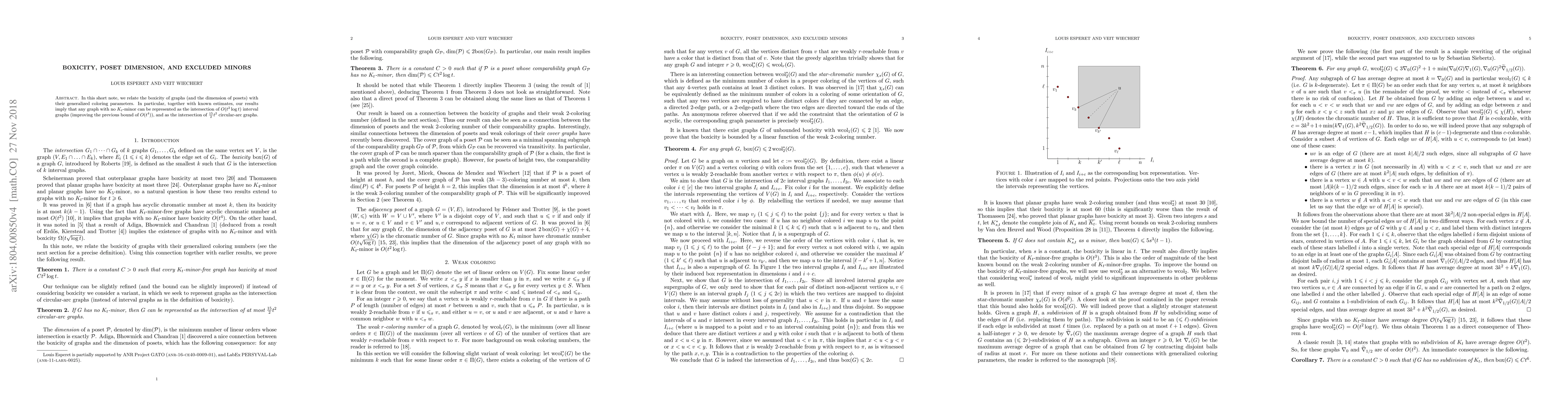 This paper explores the relationship between boxicity, poset dimension, and excluded minors, showing that graphs without $K_t$-minors can be represented as intersections of $O(t^2\log t)$ interval graphs and $\tfrac{15}2 t^2$ circular-arc graphs, improving previous bounds.