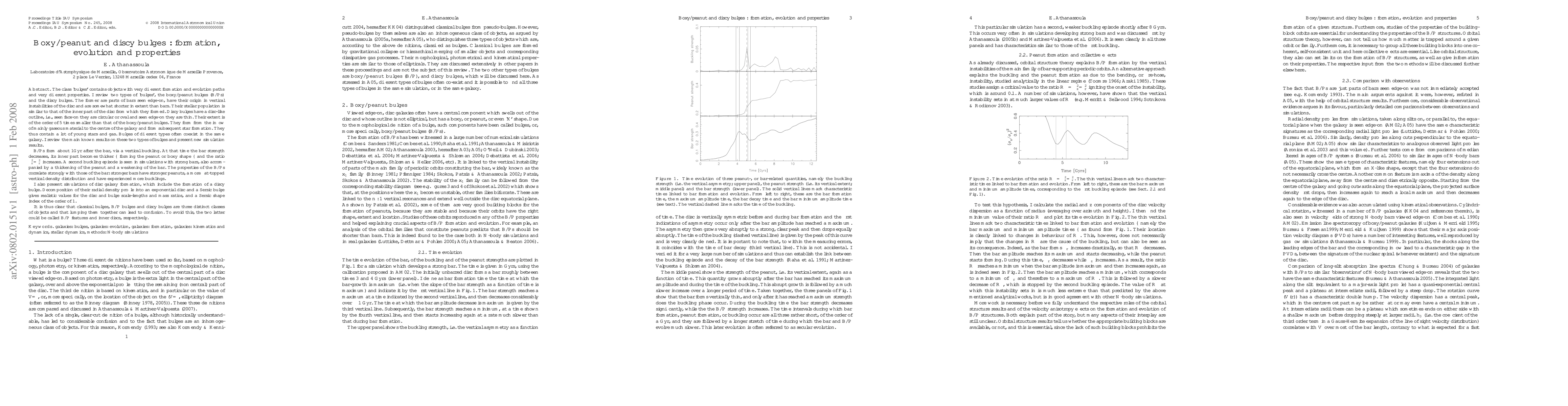 The class `bulges' contains objects with very different formation and evolution paths and very different properties. I review two types of `bulges', the boxy/peanut bulges (B/Ps) and the discy bulges. The former are parts of bars seen edge-on, have their origin in vertical instabilities of the disc and are somewhat shorter in extent than bars. Their stellar population is similar to that of the inner part of the disc from which they formed. Discy bulges have a disc-like outline, i.e., seen face-on they are circular or oval and seen edge-on they are thin. Their extent is of the order of 5 times smaller than that of the boxy/peanut bulges. They form from the inflow of mainly gaseous material to the centre of the galaxy and from subsequent star formation. They thus contain a lot of young stars and gas. Bulges of different types often coexist in the same galaxy. I review the main known results on these two types of bulges and present new simulation results. B/Ps form about 1Gyr after the bar, via a vertical buckling. At that time the bar strength decreases, its inner part becomes thicker -- forming the peanut or boxy shape -- and the ratio $\sigma_z^2/\sigma_r^2$ increases. A second buckling episode is seen in simulations with strong bars, also accompanied by a thickening of the peanut and a weakening of the bar. The properties of the B/Ps correlate strongly with those of the bar: stronger bars have stronger peanuts, a more flat-topped vertical density distribution and have experienced more bucklings. I also present simulations of disc galaxy formation, which include the formation of a discy bulge. Decomposition of their radial density profile into an exponential disc and a Sersic bulge gives realistic values for the disc and bulge scale-lengths and mass ratios, and a Sersic shape index of the order of 1.
