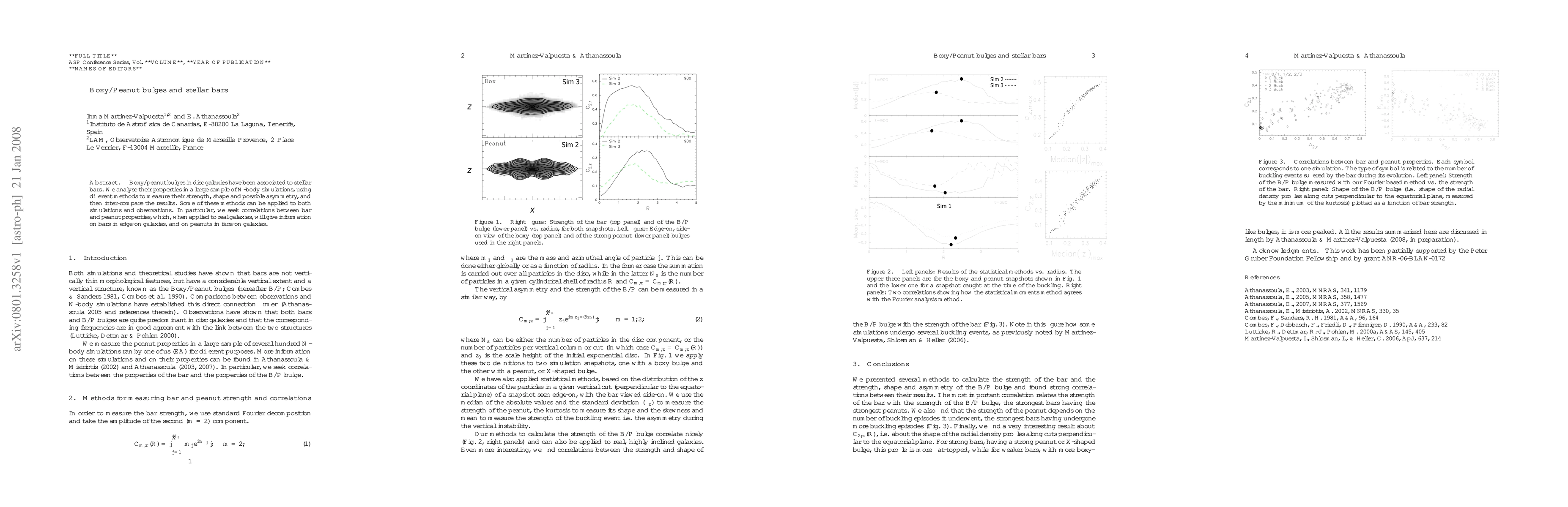 This research investigates the properties of boxy/peanut bulges in disc galaxies, correlating them with stellar bars through N-body simulations. The study compares various methods to measure bulge strength, shape, and asymmetry, aiming to provide insights into bars in edge-on and peanuts in face-on galaxies.