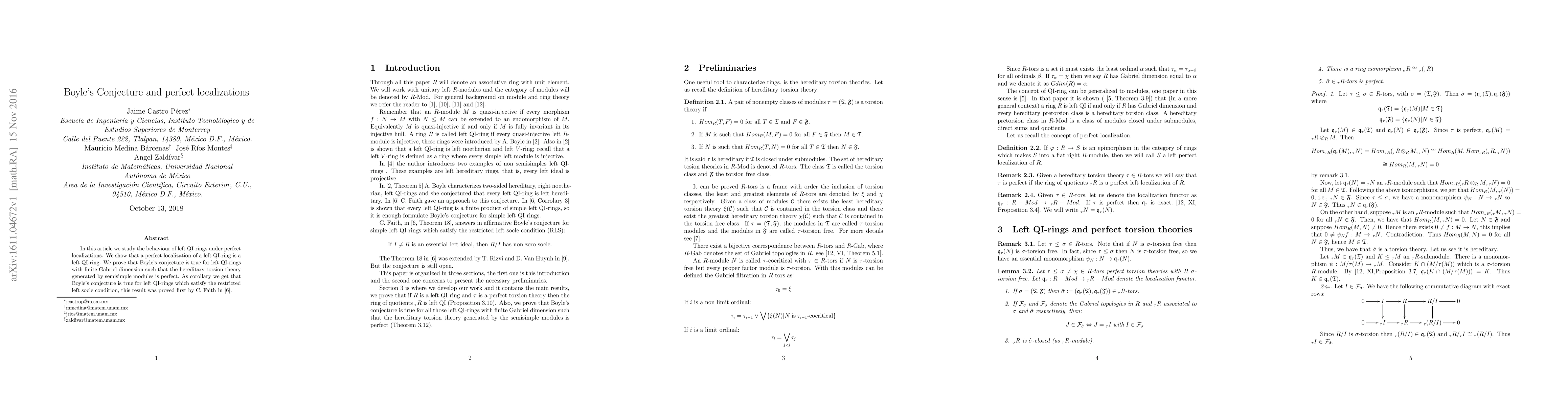 Researchers prove Boyle's conjecture for left QI-rings with finite Gabriel dimension under perfect localization, showing that perfect localizations retain their quasi-injective property.