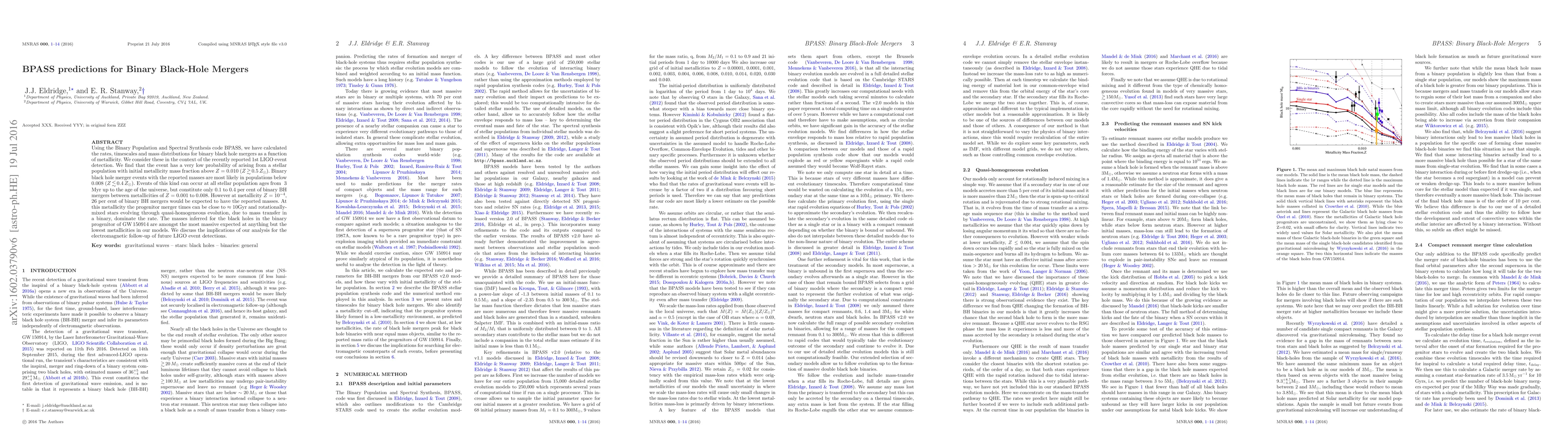 The BPASS code predicts low-probability binary black hole mergers with the reported masses in high-metallicity stellar populations, suggesting the detected event likely originated from low-metallicity environments. The analysis highlights the significance of metallicity in determining merger rates and implications for future electromagnetic follow-ups.