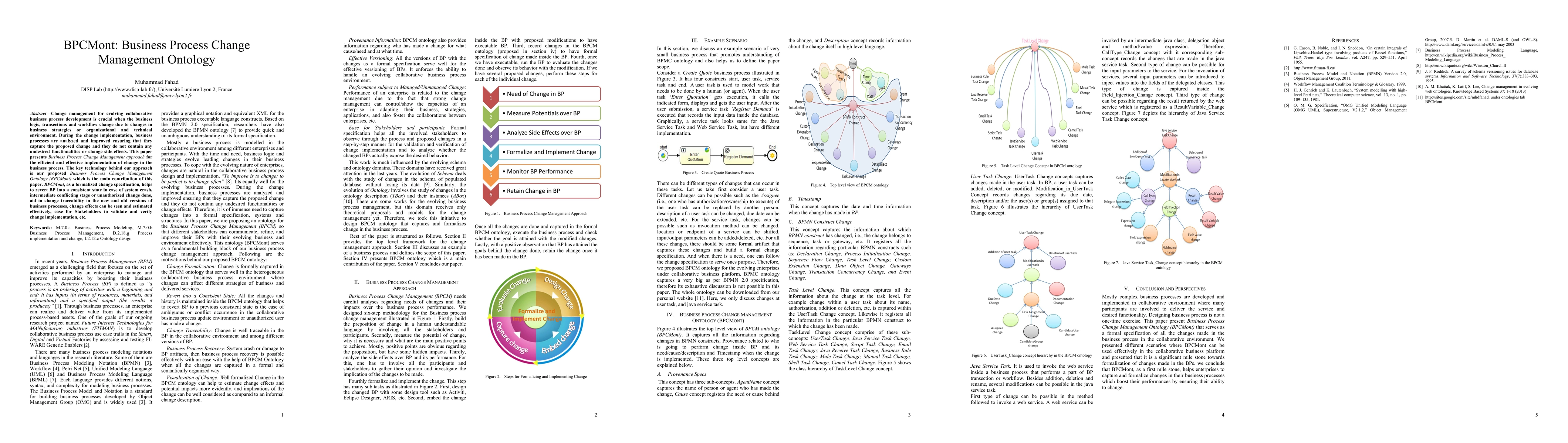 The proposed Business Process Change Management Ontology (BPCMont) provides a formal specification for capturing and managing changes in collaborative business processes.
