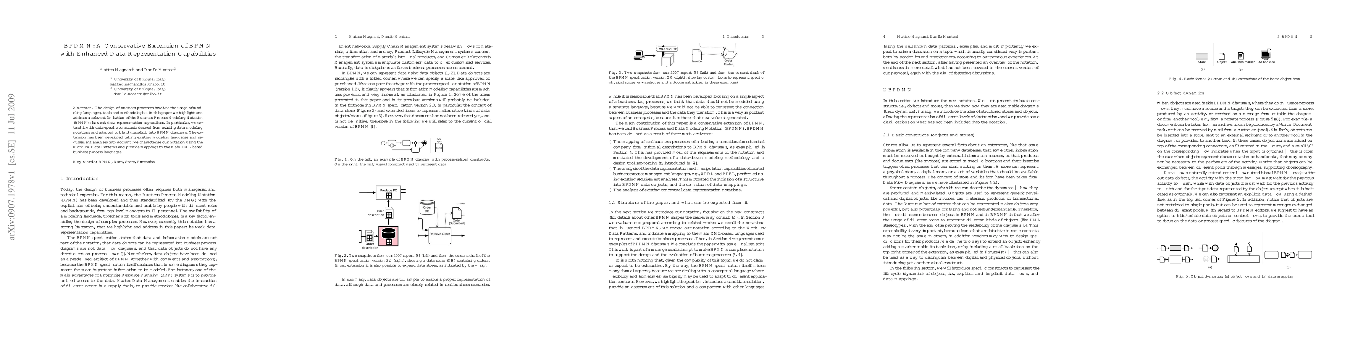 BPDMN extends BPMN by incorporating enhanced data representation constructs derived from existing data modeling notations, addressing its limitations in data handling. The new notation integrates seamlessly with BPMN and provides mappings to major XML-based business process languages.