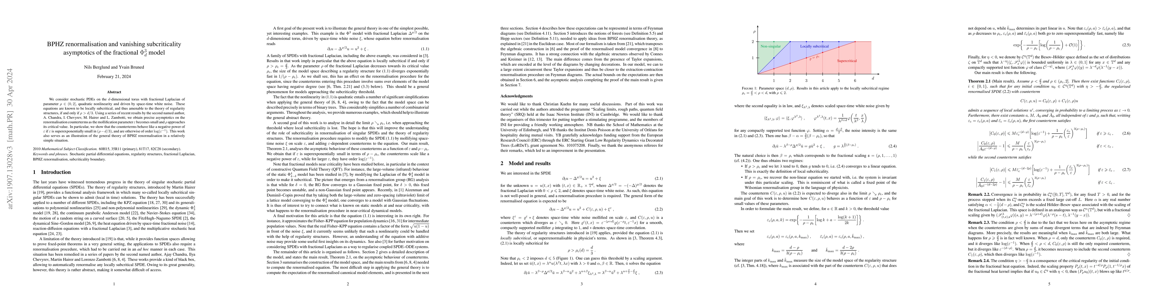 We consider stochastic PDEs on the $d$-dimensional torus with fractional Laplacian of parameter $\rho\in(0,2]$, quadratic nonlinearity and driven by space-time white noise. These equations are known to be locally subcritical, and thus amenable to the theory of regularity structures, if and only if $\rho > d/3$. Using a series of recent results by the second named author, A. Chandra, I. Chevyrev, M. Hairer and L. Zambotti, we obtain precise asymptotics on the renormalisation counterterms as the mollification parameter $\varepsilon$ becomes small and $\rho$ approaches its critical value. In particular, we show that the counterterms behave like a negative power of $\varepsilon$ if $\varepsilon$ is superexponentially small in $(\rho-d/3)$, and are otherwise of order $\log(\varepsilon^{-1})$. This work also serves as an illustration of the general theory of BPHZ renormalisation in a relatively simple situation.