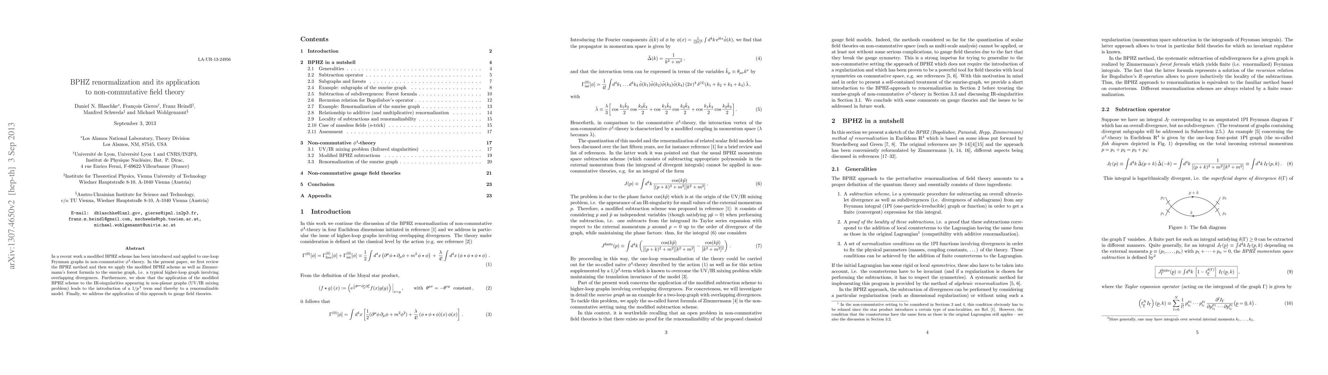 This paper reviews the BPHZ renormalization method and applies a modified version, along with Zimmermann's forest formula, to a higher-loop sunrise graph in non-commutative phi^4-theory, addressing UV/IR mixing and demonstrating renormalizability with a 1/p^2 term. It also explores the implications for gauge field theories.