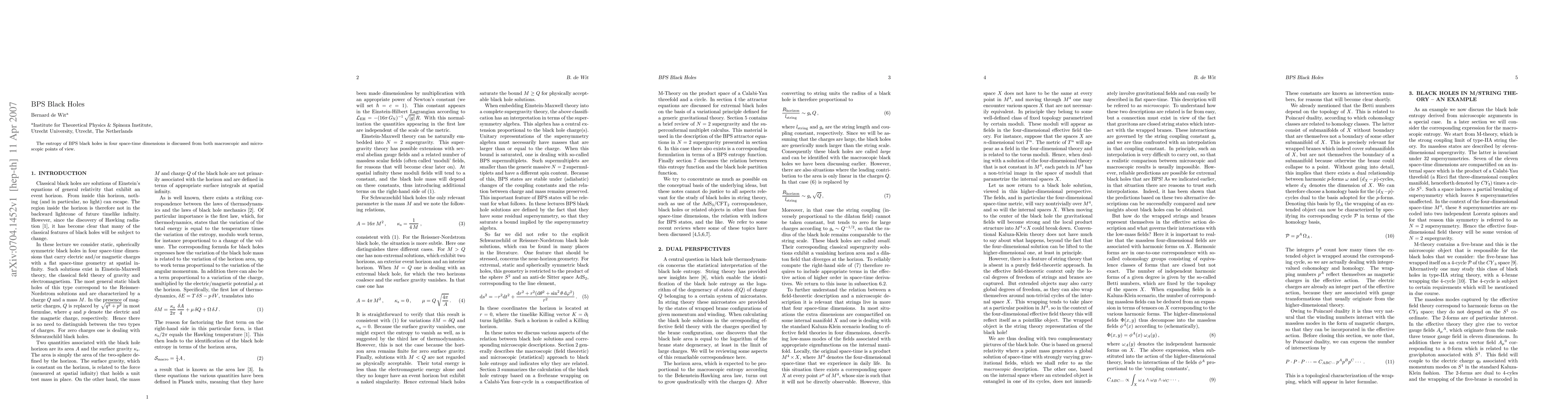 Summary: This paper explores the entropy of BPS black holes in four-dimensional space-time, examining it through both macroscopic thermodynamic approaches and microscopic statistical mechanics perspectives.
