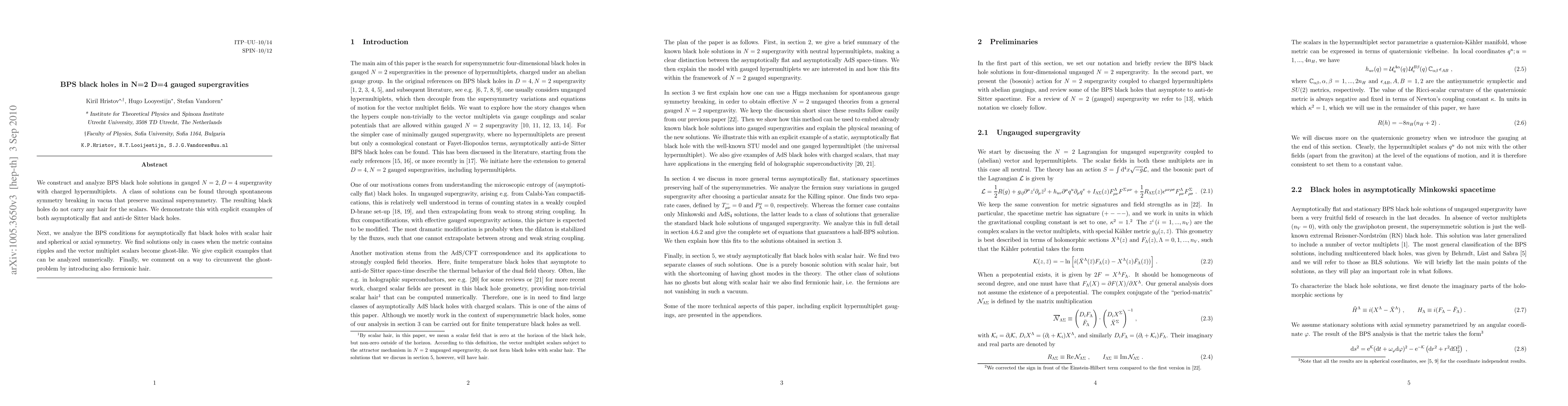 The work extends previous research by explicitly constructing and analyzing BPS black hole solutions in gauged supergravity, highlighting the challenges posed by ghost-like scalar behavior in certain solutions.