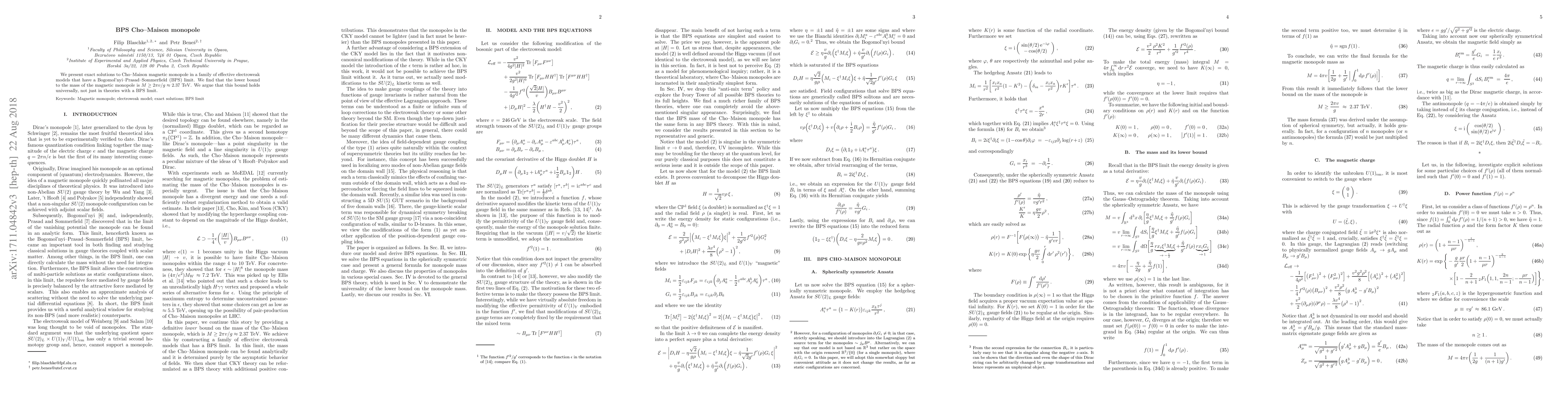 The paper presents exact solutions for Cho-Maison magnetic monopoles in effective electroweak models, finding a universal mass lower bound of $M \geq 2.37\,\, \mathrm{TeV}$. This mass limit applies beyond just BPS-limited theories.