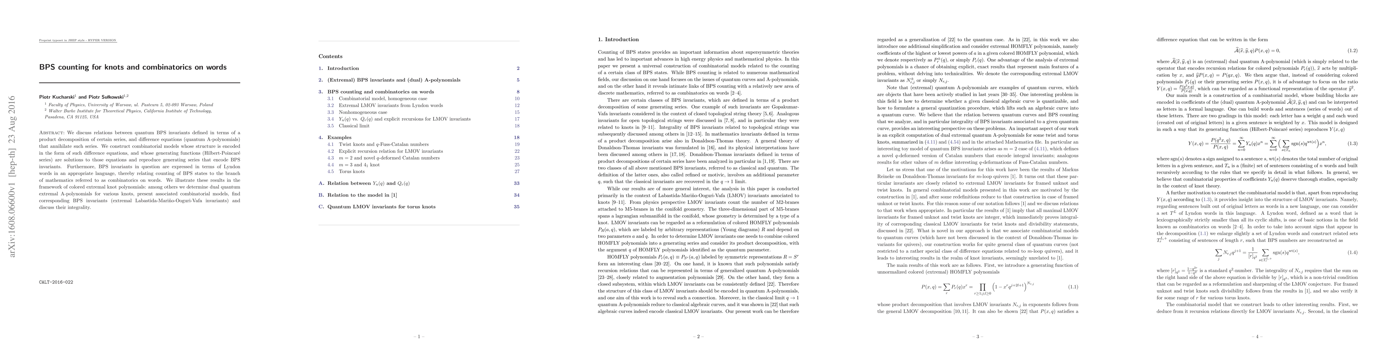We discuss relations between quantum BPS invariants defined in terms of a product decomposition of certain series, and difference equations (quantum A-polynomials) that annihilate such series. We construct combinatorial models whose structure is encoded in the form of such difference equations, and whose generating functions (Hilbert-Poincar\'e series) are solutions to those equations and reproduce generating series that encode BPS invariants. Furthermore, BPS invariants in question are expressed in terms of Lyndon words in an appropriate language, thereby relating counting of BPS states to the branch of mathematics referred to as combinatorics on words. We illustrate these results in the framework of colored extremal knot polynomials: among others we determine dual quantum extremal A-polynomials for various knots, present associated combinatorial models, find corresponding BPS invariants (extremal Labastida-Mari\~no-Ooguri-Vafa invariants) and discuss their integrality.