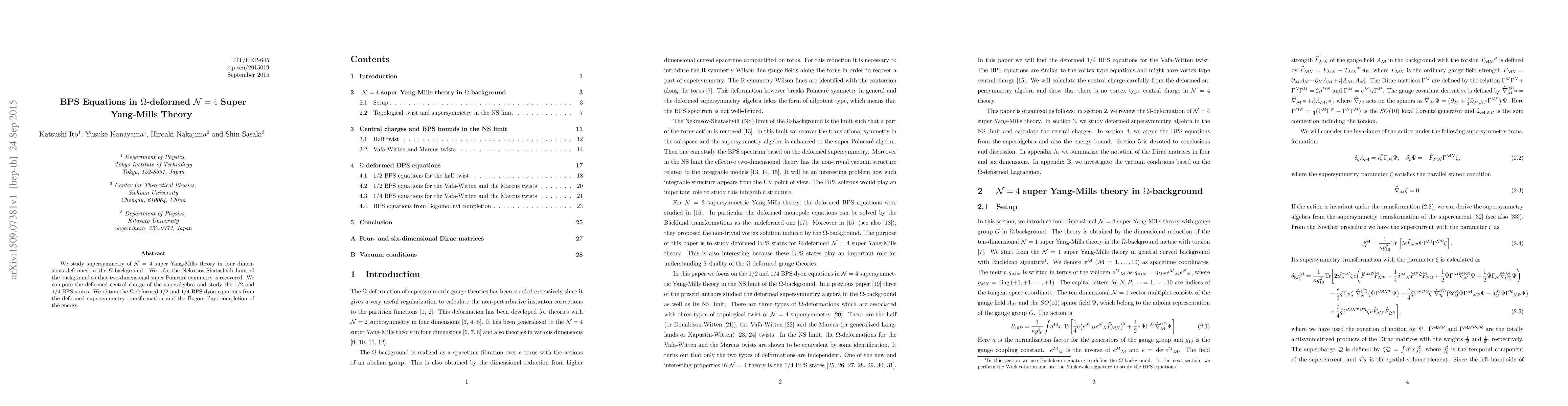 This paper investigates the supersymmetry in Omega-deformed N=4 super Yang-Mills theory, focusing on the computation of the deformed central charge and the derivation of Omega-deformed 1/2 and 1/4 BPS dyon equations through supersymmetry transformations and Bogomol'nyi completion.