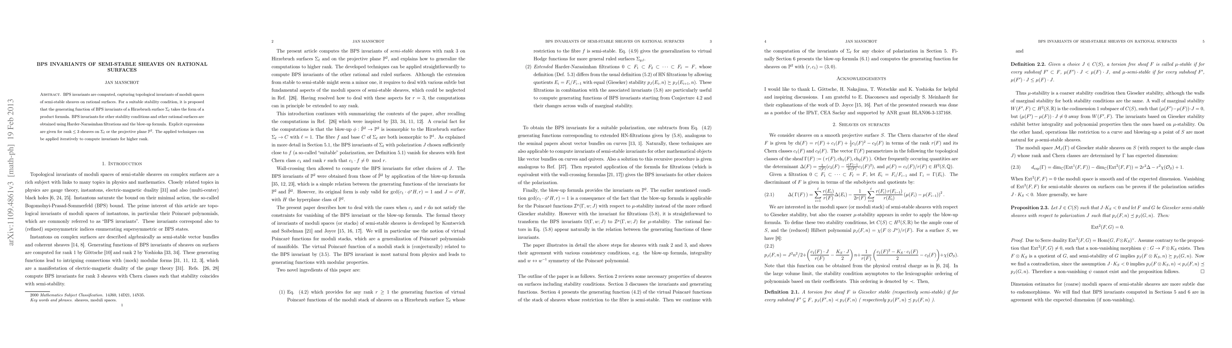 This paper computes BPS invariants for semi-stable sheaves on rational surfaces, deriving a product formula for Hirzebruch surfaces and using Harder-Narasimhan filtrations for general rational surfaces. Explicit results for rank <4 sheaves on Hirzebruch surfaces and the projective plane are provided, with techniques scalable for higher ranks.