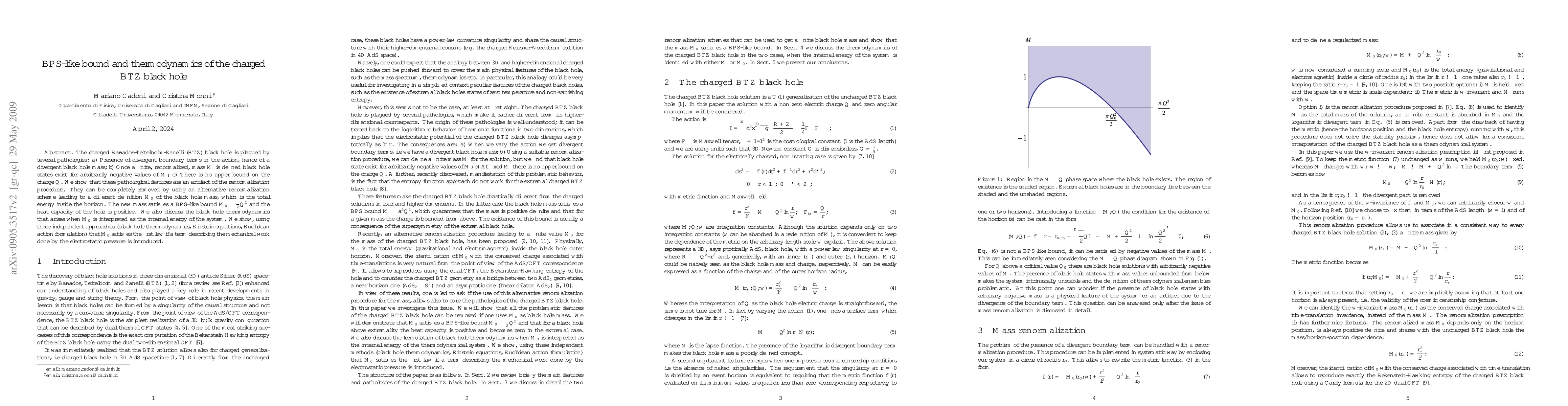 Researchers remove pathologies from the charged BTZ black hole by introducing a new definition of mass that satisfies a BPS-like bound and leads to positive heat capacity.
