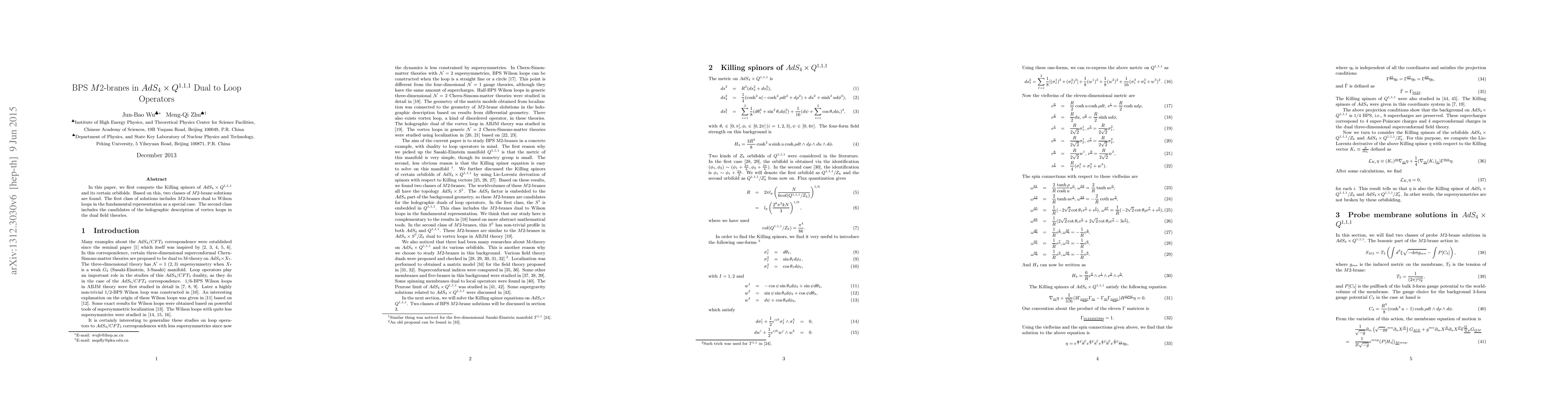 Researchers found two classes of M2-brane solutions in AdS4 imes Q^{1, 1, 1} space-time, including those dual to Wilson loops and vortex loops in holographic field theories.