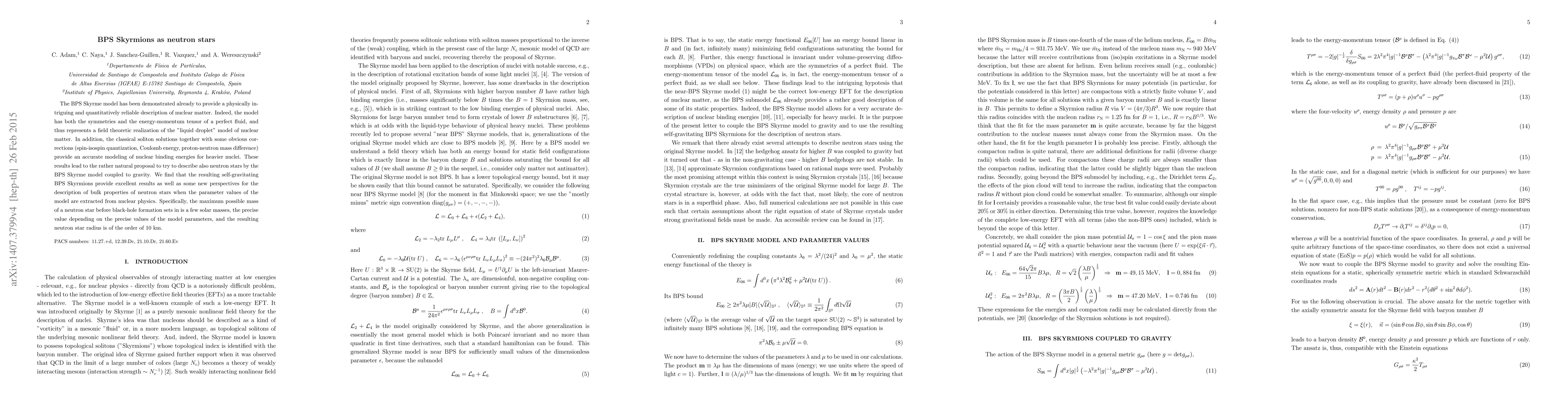 The research utilizes the BPS Skyrme model to describe neutron stars, fitting two model parameters to the nucleon mass and radius for reasonable results on neutron star masses and radii.
