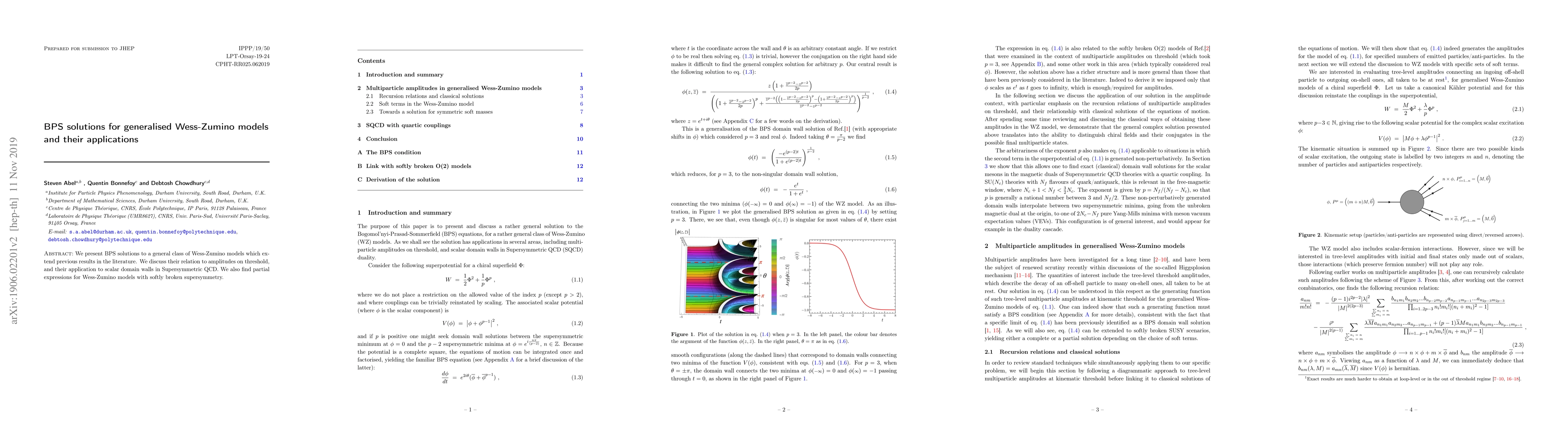 This paper presents new BPS solutions for generalised Wess-Zumino models, extending existing results, and explores their relevance to amplitudes on threshold, particularly in the context of scalar domain walls in Supersymmetric QCD. It also provides partial expressions for Wess-Zumino models with softly broken supersymmetry.