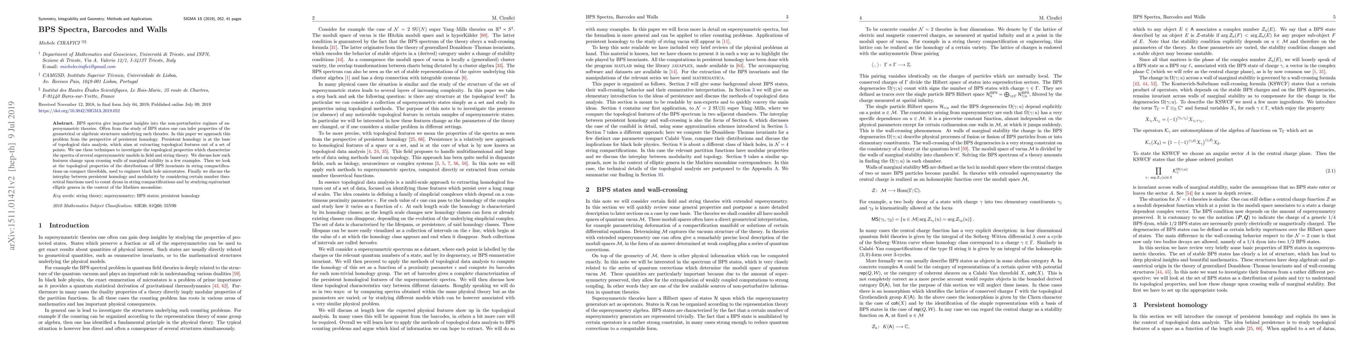 BPS spectra give important insights into the non-perturbative regimes of supersymmetric theories. Often from the study of BPS states one can infer properties of the geometrical or algebraic structures underlying such theories. In this paper we approach this problem from the perspective of persistent homology. Persistent homology is at the base of topological data analysis, which aims at extracting topological features out of a set of points. We use these techniques to investigate the topological properties which characterize the spectra of several supersymmetric models in field and string theory. We discuss how such features change upon crossing walls of marginal stability in a few examples. Then we look at the topological properties of the distributions of BPS invariants in string compactifications on compact threefolds, used to engineer black hole microstates. Finally we discuss the interplay between persistent homology and modularity by considering certain number theoretical functions used to count dyons in string compactifications and by studying equivariant elliptic genera in the context of the Mathieu moonshine.