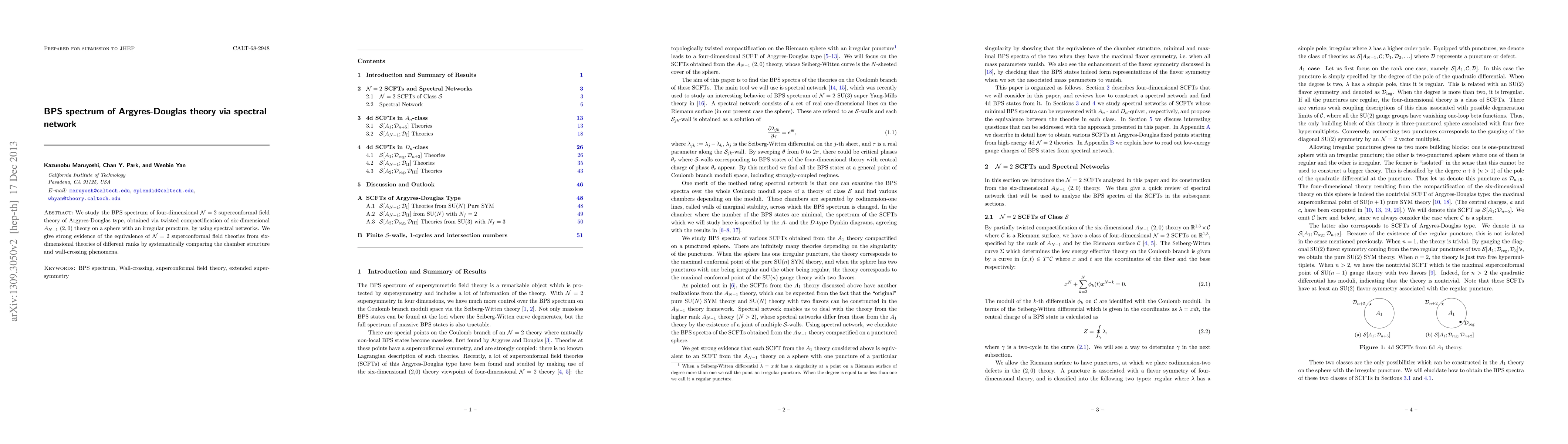 The research employs spectral networks to analyze the BPS spectrum of four-dimensional $\mathcal{N}=2$ superconformal field theories of Argyres-Douglas type, obtained via twisted compactification of six-dimensional $A_{N-1}$ $(2,0)$ theory on a sphere with an irregular puncture.