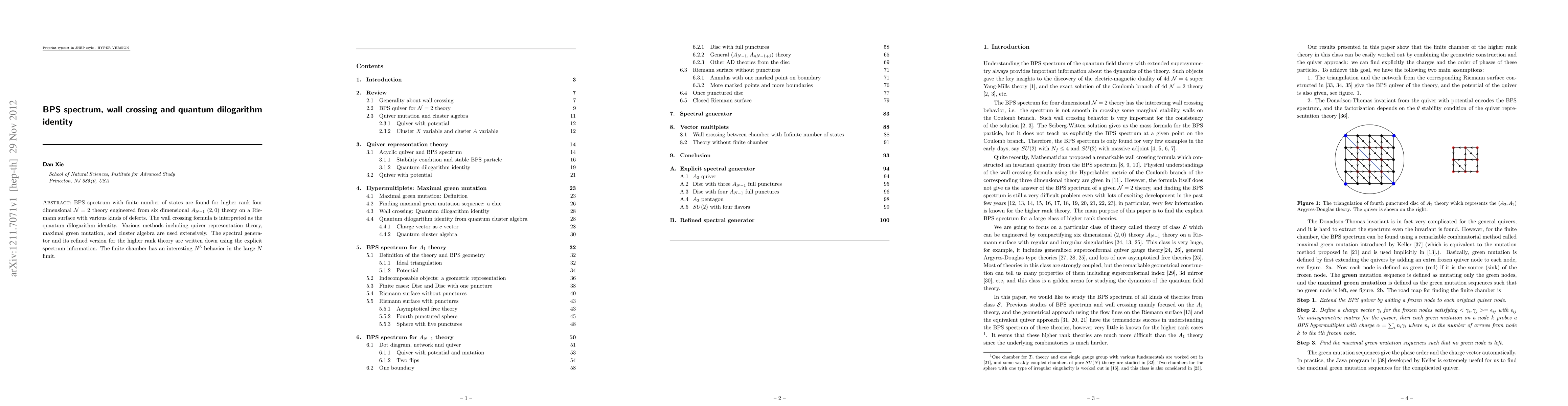 Summary: The paper determines the BPS spectrum for higher rank four-dimensional N=2 theories derived from six-dimensional (2,0) theories, employing wall crossing to interpret the quantum dilogarithm identity and utilizing advanced methods like quiver representation theory and cluster algebra. The spectral generator shows an intriguing N^3 behavior in the large N limit.