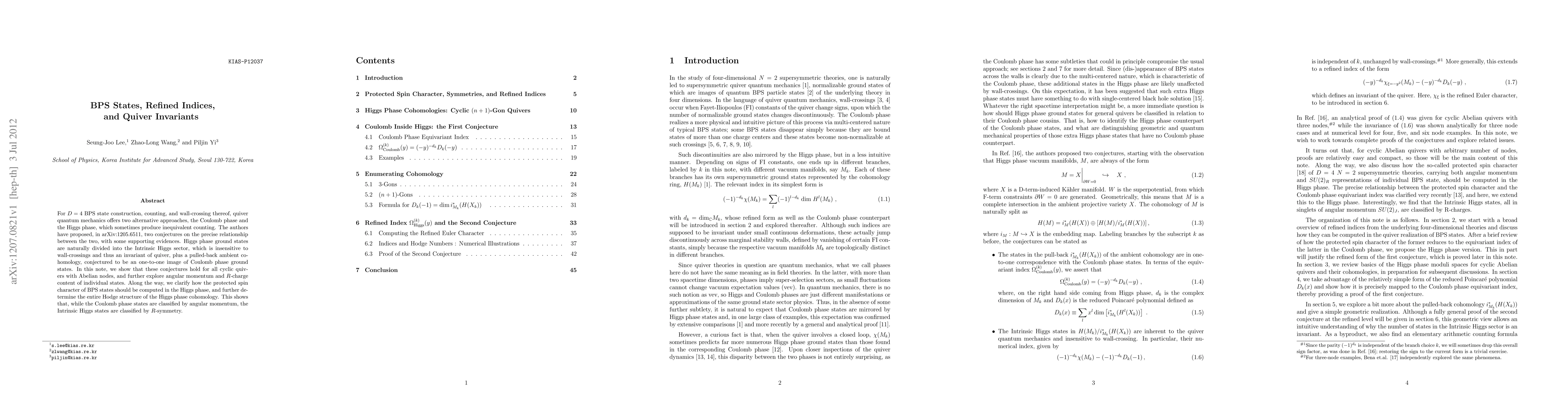 Research involved constructing Higgs phases from field theory BPS states, computing quiver indices, and analyzing wall-crossing behavior.