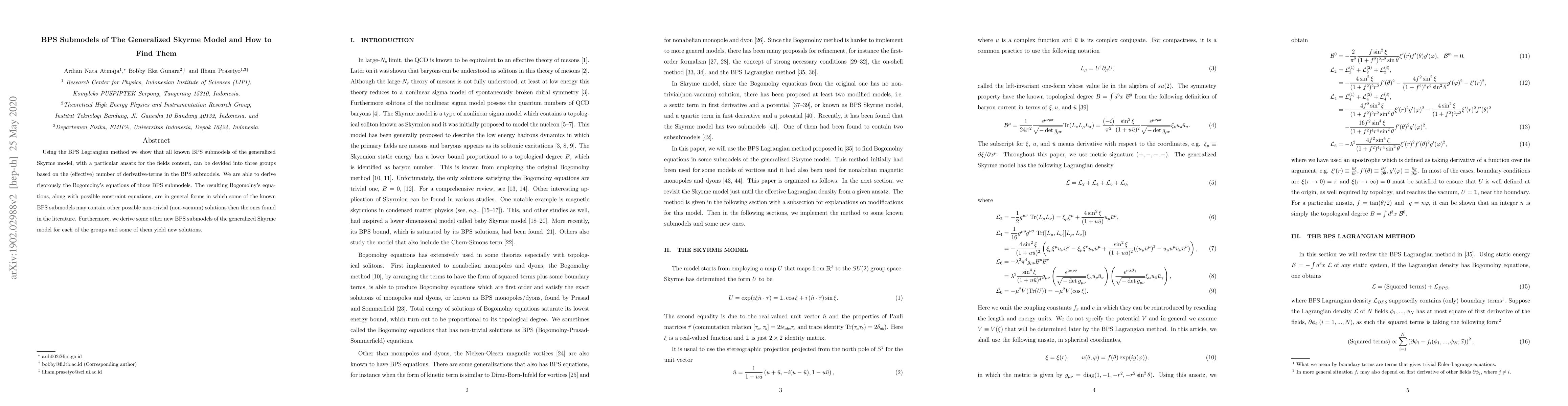 This paper categorizes known BPS submodels of the generalized Skyrme model into three groups based on the number of derivative terms, rigorously deriving Bogomolny's equations for each. It also identifies new BPS submodels and potential non-trivial solutions beyond those previously reported.
