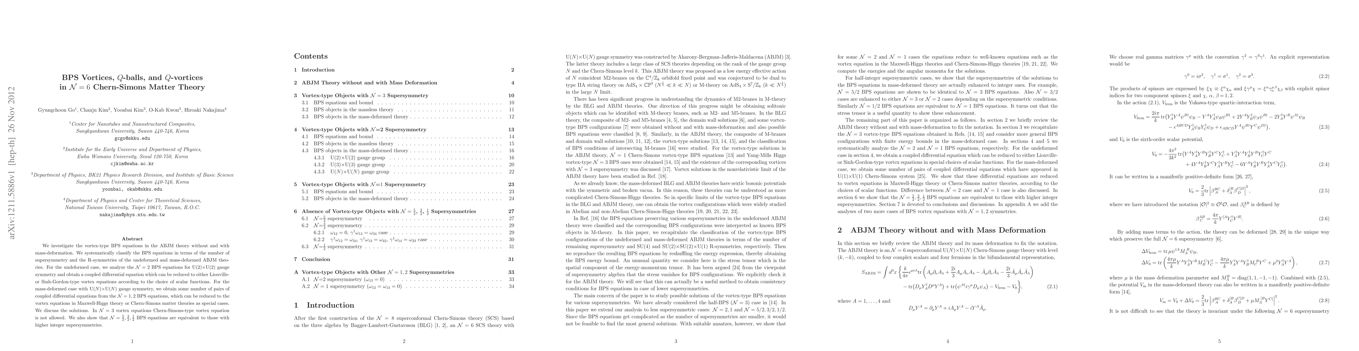 This paper investigates vortex-type BPS equations in the ABJM theory under both undeformed and mass-deformed conditions, classifying them based on supersymmetry and R-symmetries. It finds that undeformed theory's ${\cal N}=2$ BPS equations reduce to Liouville- or Sinh-Gordon-type vortex equations, while mass-deformed theory's ${\cal N}=1,2$ BPS equations reduce to Maxwell-Higgs or Chern-Simons matter theory vortex equations. The study also establishes equivalence between ${\cal N}=\frac52, \frac32, \frac12$ BPS equations and higher integer supersymmetries.