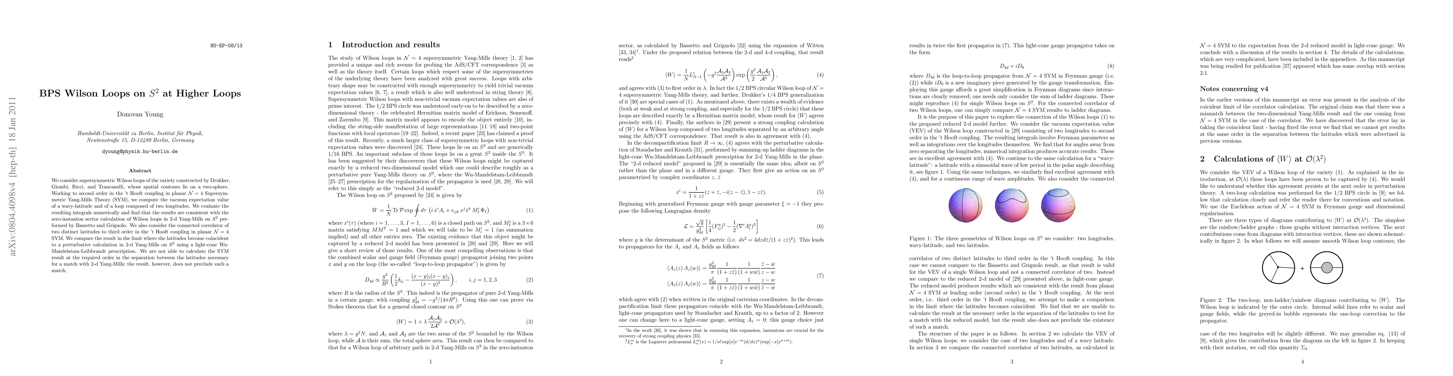 We consider supersymmetric Wilson loops of the variety constructed by Drukker, Giombi, Ricci, and Trancanelli, whose spatial contours lie on a two-sphere. Working to second order in the 't Hooft coupling in planar N=4 Supersymmetric Yang-Mills Theory (SYM), we compute the vacuum expectation value of a wavy-latitude and of a loop composed of two longitudes. We evaluate the resulting integrals numerically and find that the results are consistent with the zero-instanton sector calculation of Wilson loops in 2-d Yang-Mills on S^2 performed by Bassetto and Griguolo. We also consider the connected correlator of two distinct latitudes to third order in the 't Hooft coupling in planar N=4 SYM. We compare the result in the limit where the latitudes become coincident to a perturbative calculation in 2-d Yang-Mills on S^2 using a light-cone Wu-Mandelstam-Leibbrandt prescription. We are not able to calculate the SYM result at the required order in the separation between the latitudes necessary for a match with 2-d Yang-Mills; the result, however, does not preclude such a match.