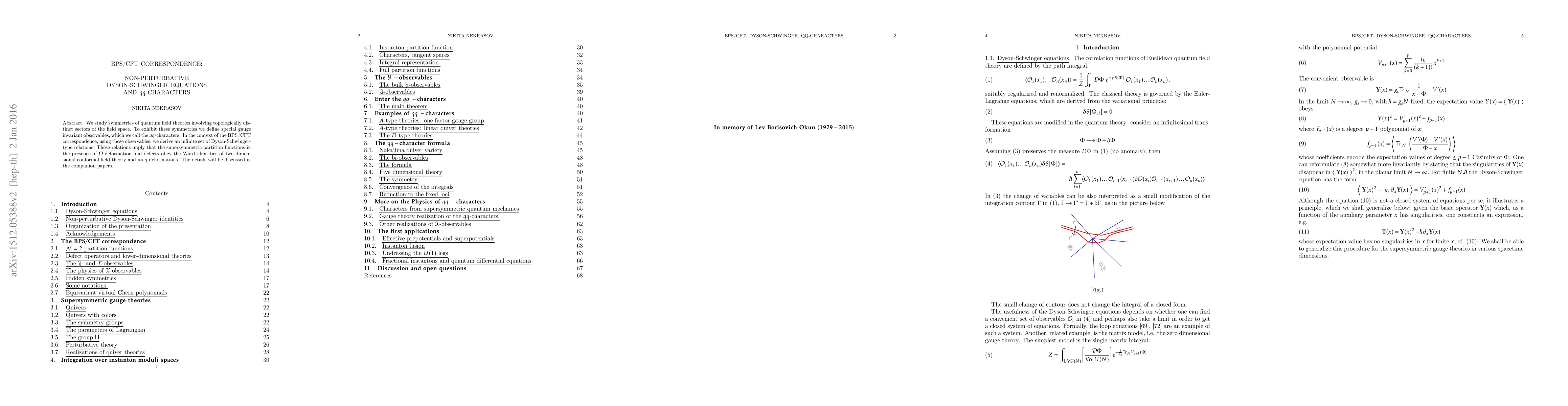 We study symmetries of quantum field theories involving topologically distinct sectors of the field space. To exhibit these symmetries we define special gauge invariant observables, which we call the $qq$-characters. In the context of the BPS/CFT correspondence, using these observables, we derive an infinite set of Dyson-Schwinger-type relations. These relations imply that the supersymmetric partition functions in the presence of $\Omega$-deformation and defects obey the Ward identities of two dimensional conformal field theory and its $q$-deformations. The details will be discussed in the companion papers.
