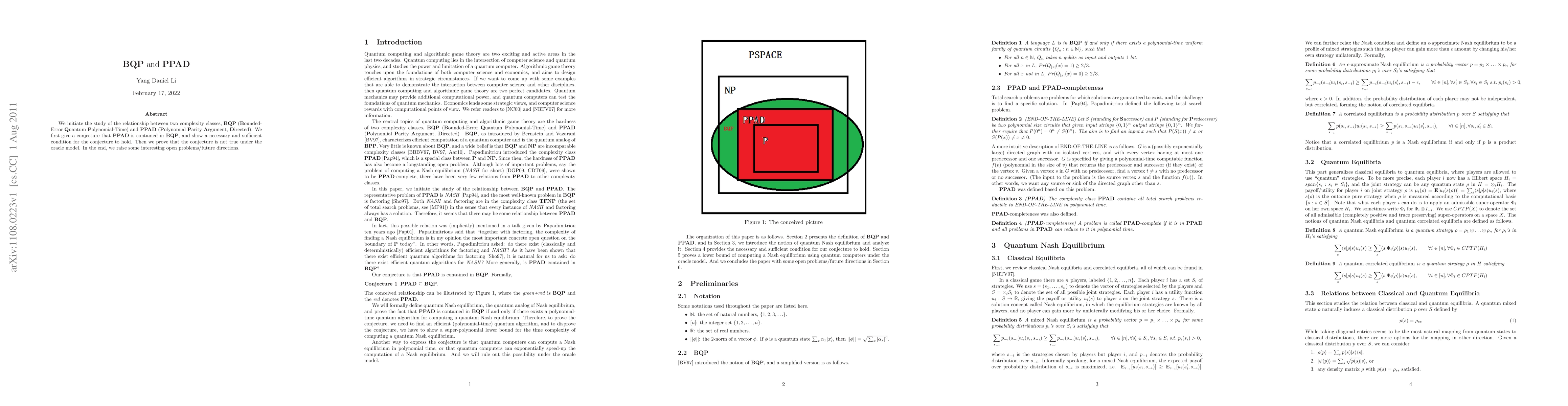 This paper explores the relationship between the complexity classes BQP and PPAD, proposing a conjecture that PPAD is contained in BQP and proving it false under the oracle model. It concludes by highlighting open problems and future research directions.