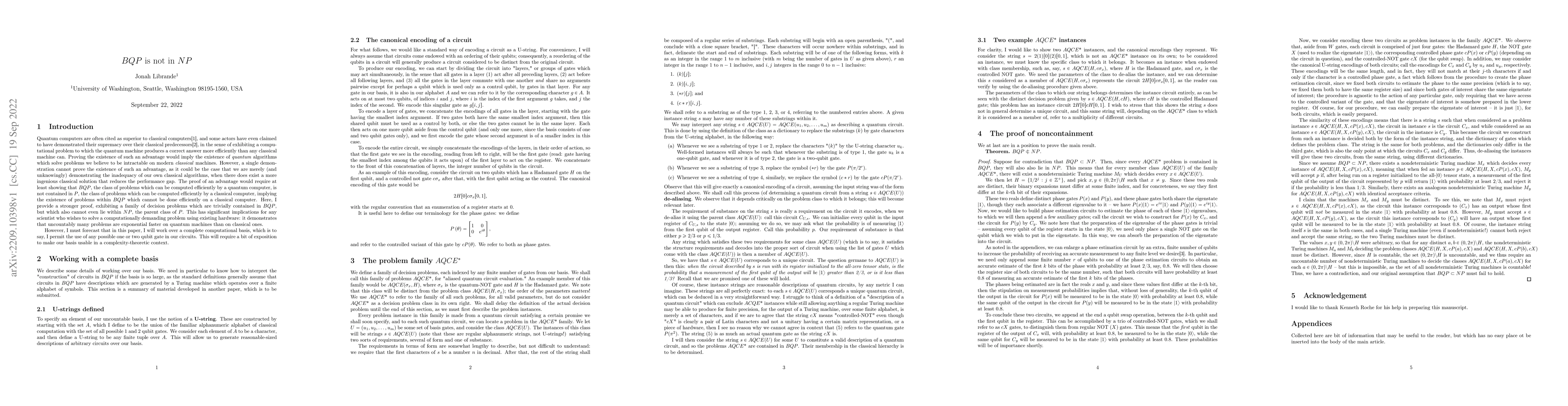 Quantum computers are widely believed have an advantage over classical computers, and some have even published some empirical evidence that this is the case. However, these publications do not include a rigorous proof of this advantage, which would have to minimally state that the class of problems decidable by a quantum computer in polynomial time, BQP, contains problems that are not in the class of problems decidable by a classical computer with similar time bounds, P. Here, I provide the proof of a stronger result that implies this result: BQP contains problems that lie beyond the much larger classical computing class NP. This proves that quantum computation is able to efficiently solve problems which are far beyond the capabilities of classical computers.