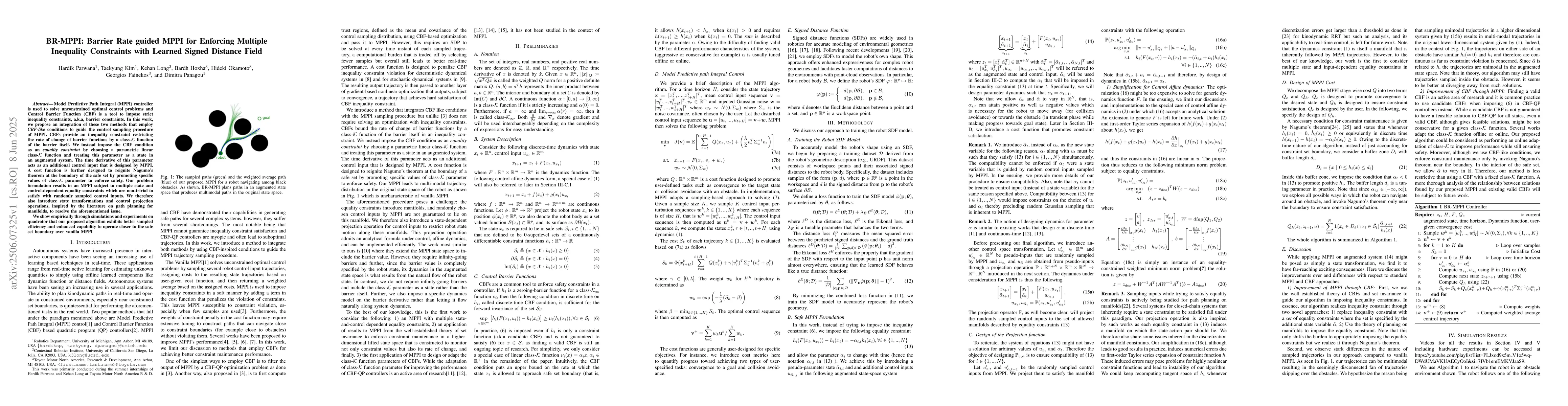 This paper proposes a new algorithm that combines Model Predictive Path Integral (MPPI) with barrier functions to enforce multiple inequality constraints in control systems, achieving better sampled efficiency and safer operation near the constraint boundary.