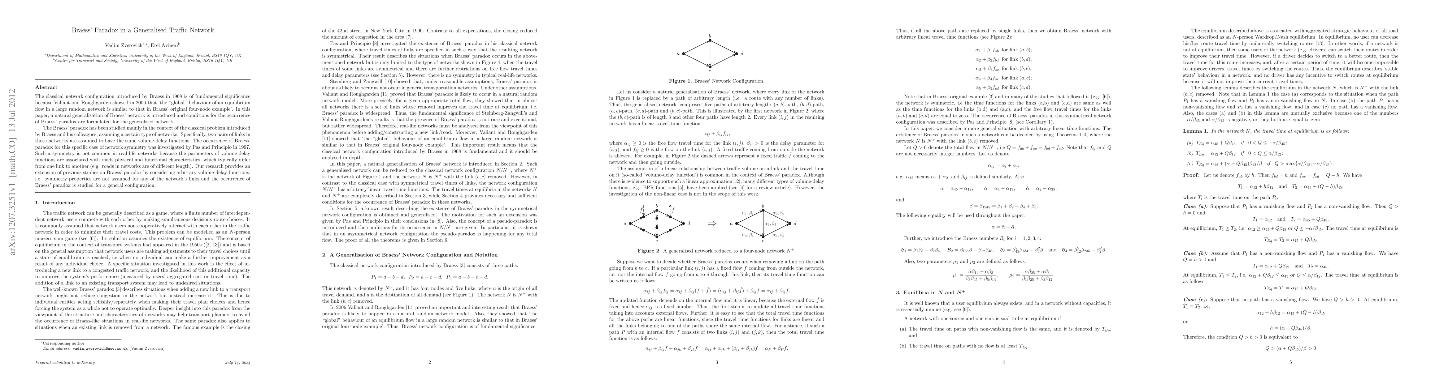 This paper generalizes Braess' Paradox to a broader traffic network context, removing the assumption of symmetrical volume-delay functions. It formulates conditions for the paradox's occurrence in networks with arbitrary volume-delay functions, extending the classical study to more realistic, asymmetric configurations.