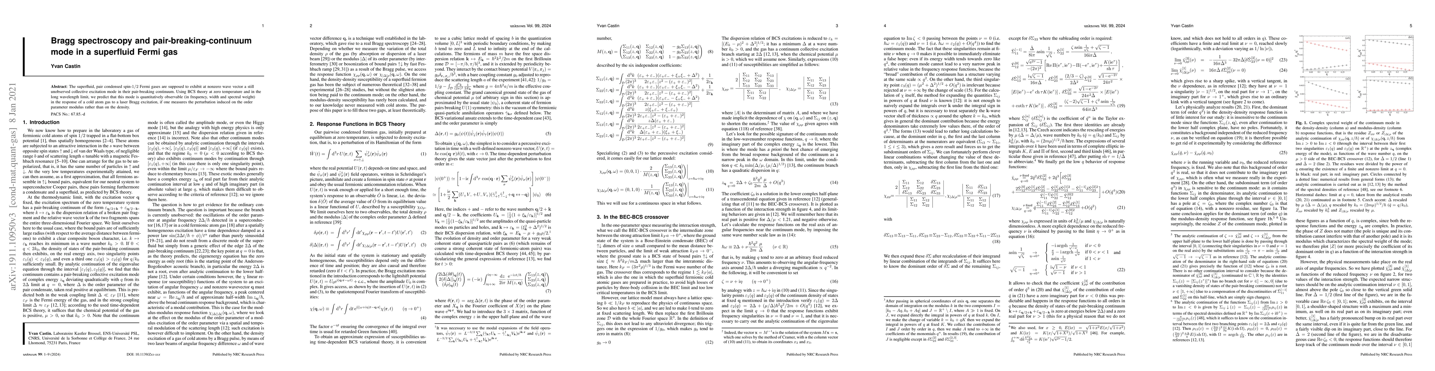 This research predicts a new collective excitation mode in superfluid pair-condensed spin-1/2 Fermi gases, observable via Bragg spectroscopy. The study suggests that this mode, in the pair-breaking continuum, can be detected by measuring the perturbation on the order parameter modulus rather than density.