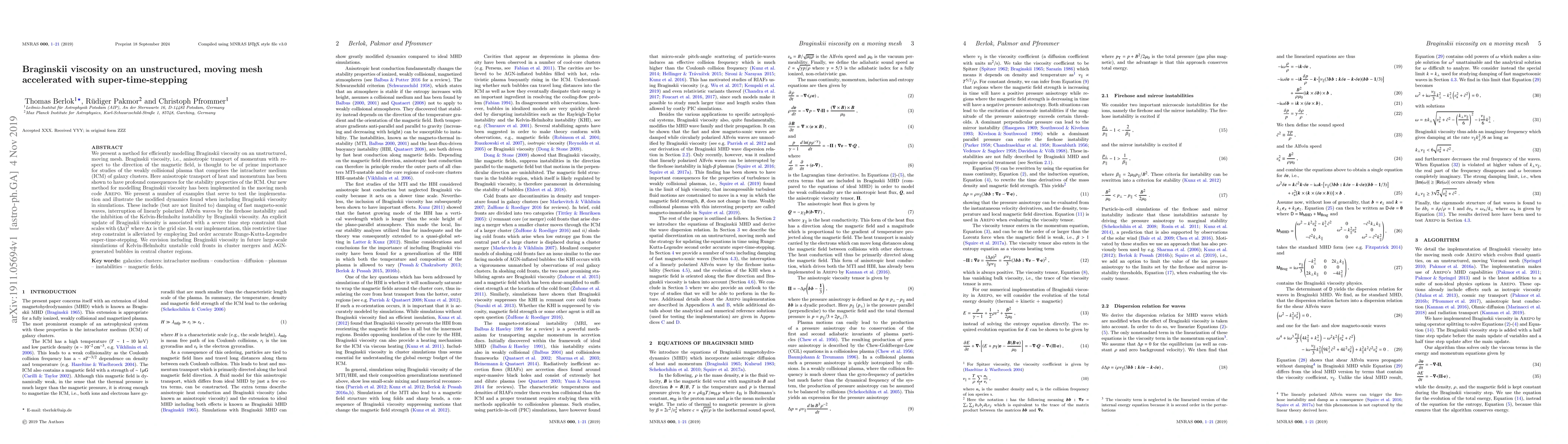 This paper introduces a method for efficiently modeling Braginskii viscosity on an unstructured, moving mesh using super-time-stepping techniques to overcome restrictive time step constraints. The method is implemented in the Arepo code and demonstrates its effectiveness in damping waves and stabilizing plasma dynamics in galaxy clusters.