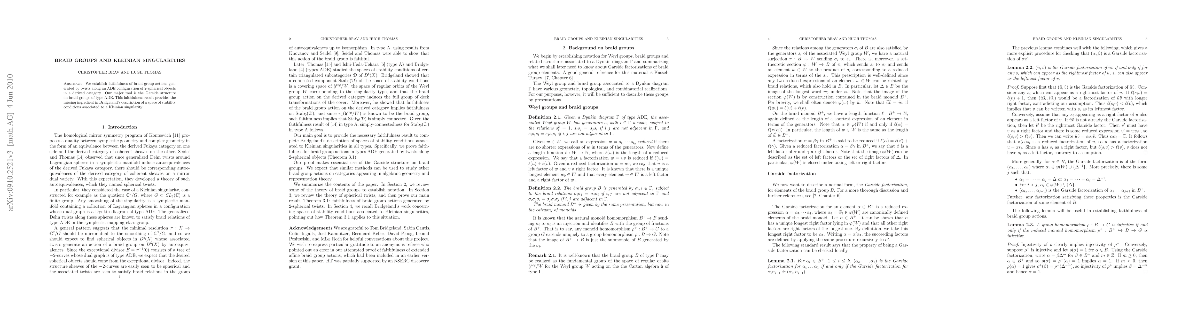 This paper proves the faithfulness of braid group actions generated by twists along an ADE configuration in a derived category, using the Garside structure. This result completes Bridgeland's description of stability conditions for Kleinian singularities.