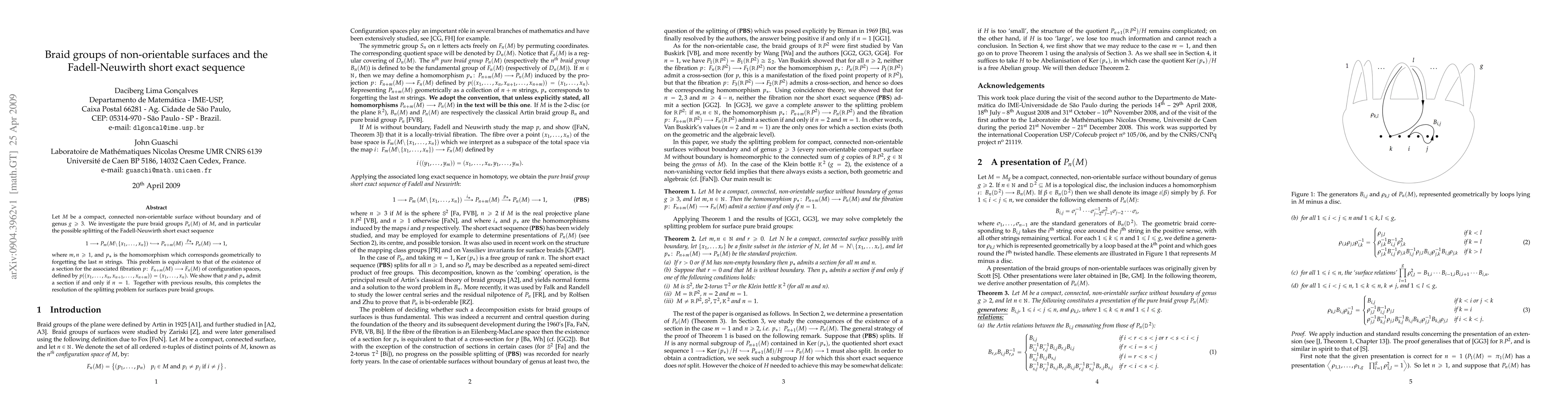 Let M be a compact, connected non-orientable surface without boundary and of genus g greater than or equal to 3. We investigate the pure braid groups P_n(M) of M, and in particular the possible splitting of the Fadell-Neuwirth short exact sequence 1 --> P_m(M {x_1,...,x_n}) --> P_{n+m}(M) --> P_n(M) --> 1, where m,n are positive integers, and the homomorphism p*:P_{n+m}(M) --> P_n(M) corresponds geometrically to forgetting the last m strings. This problem is equivalent to that of the existence of a section for the associated fibration p:F_{n+m}(M)} --> F_n(M) of configuration spaces, defined by p((x_1,...,x_n,..., x_{n+m}))= (x_1, ..., x_n). We show that p and p* admit a section if and only if n=1. Together with previous results, this completes the resolution of the splitting problem for surfaces pure braid groups.
