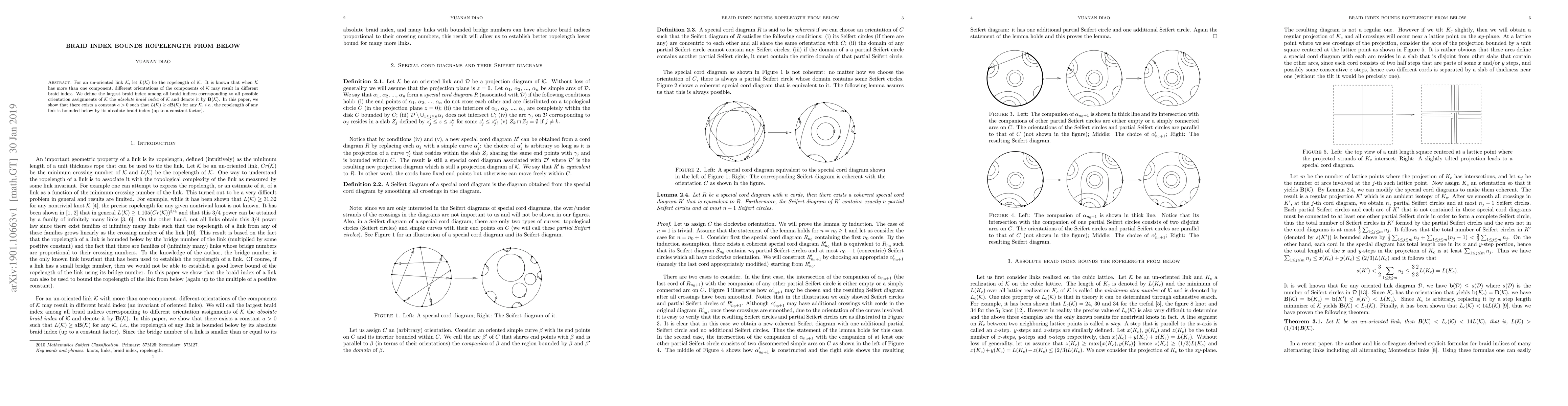 For an un-oriented link $\mathcal{K}$, let $L(\mathcal{K})$ be the ropelength of $\mathcal{K}$. It is known that when $\mathcal{K}$ has more than one component, different orientations of the components of $\mathcal{K}$ may result in different braid index. We define the largest braid index among all braid indices corresponding to all possible orientation assignments of $\mathcal{K}$ the {\em absolute braid index} of $\mathcal{K}$ and denote it by $\textbf{B}(\mathcal{K})$. In this paper, we show that there exists a constant $a>0$ such that $L(\mathcal{K})\ge a \textbf{B}(\mathcal{K}) $ for any $\mathcal{K}$, {\em i.e.}, the ropelength of any link is bounded below by its absolute braid index (up to a constant factor).
