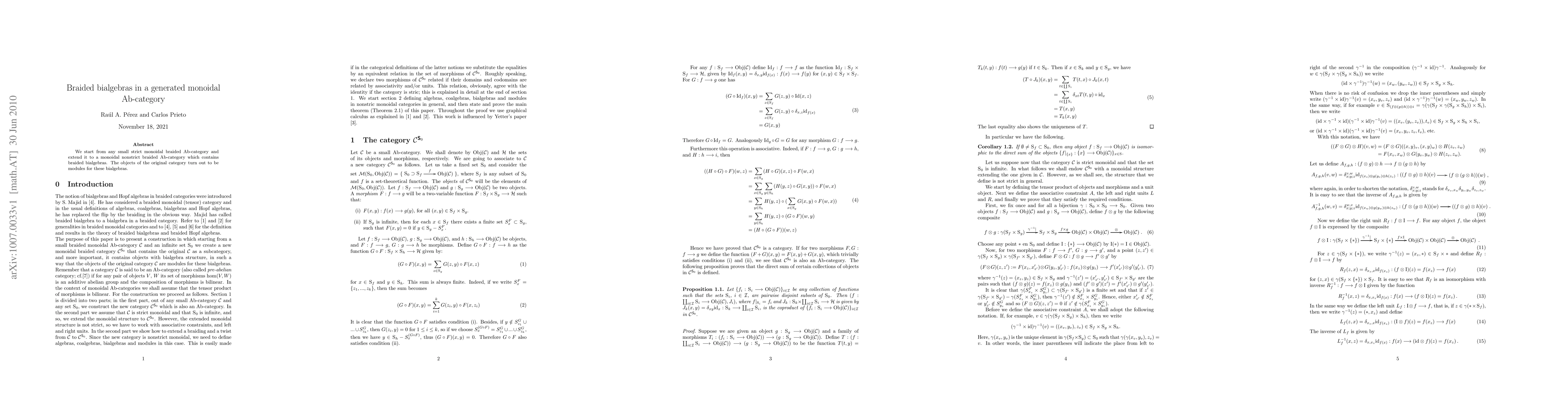 Summary: This paper extends a small strict monoidal braided Ab-category to a nonstrict version that accommodates braided bialgebras, where original category objects function as modules for these bialgebras.